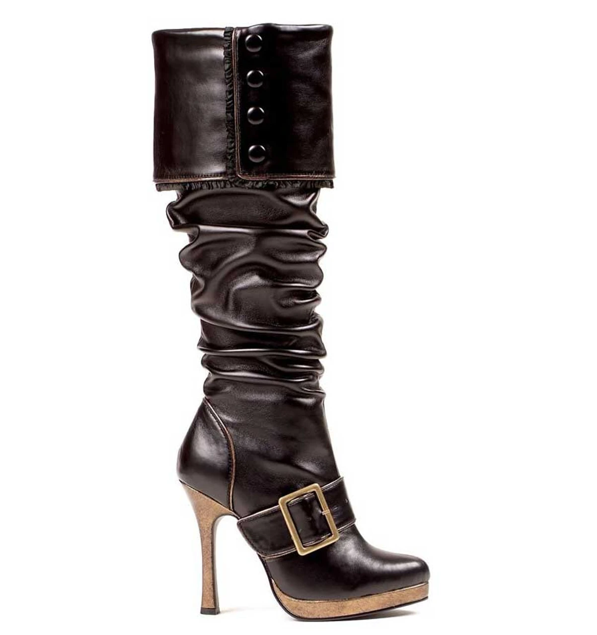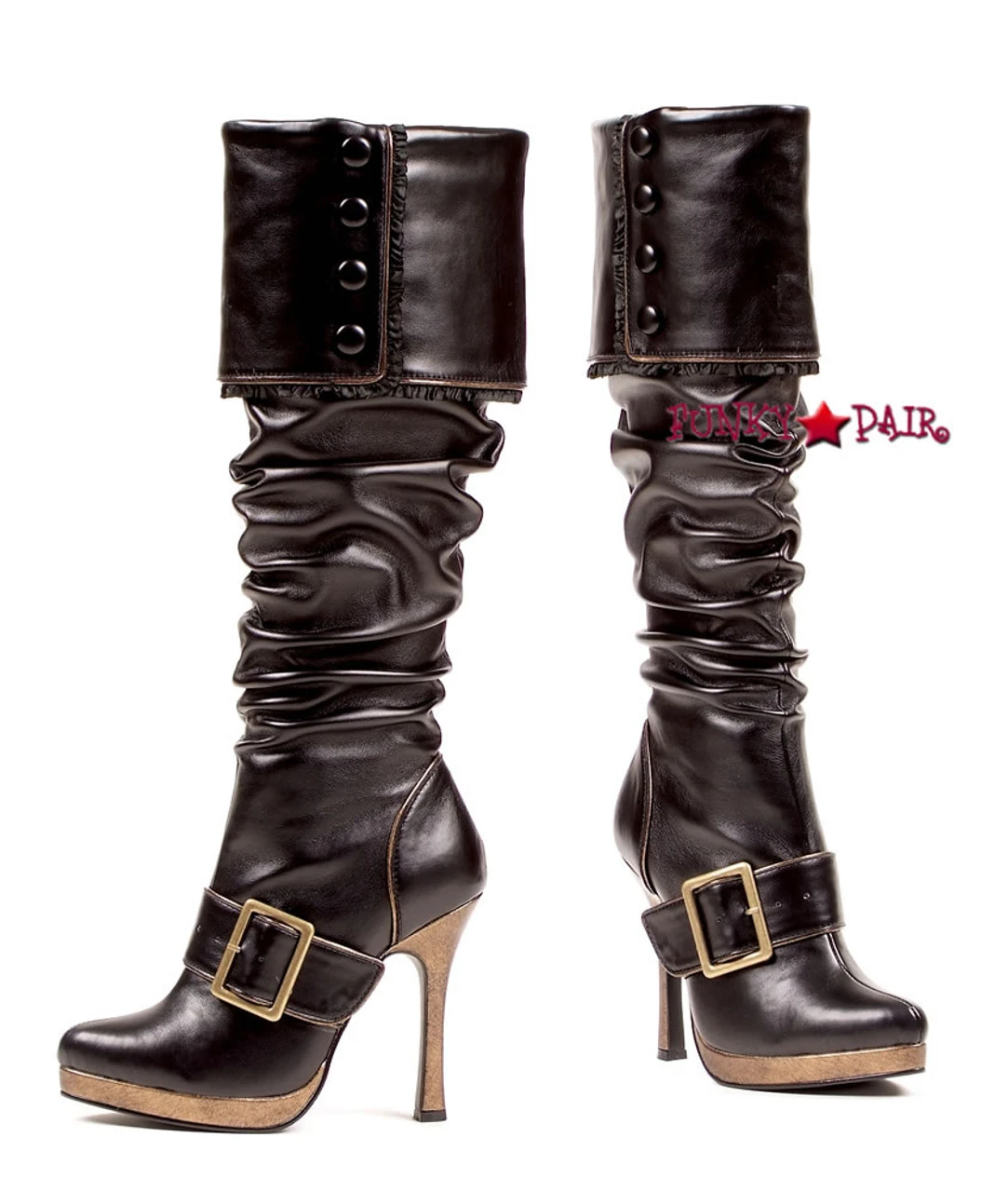 Ellie Shoes | 426-Grace Approximately 4 Inch heel Scrunch up Knee High Pirate Boots with buckles and button accents