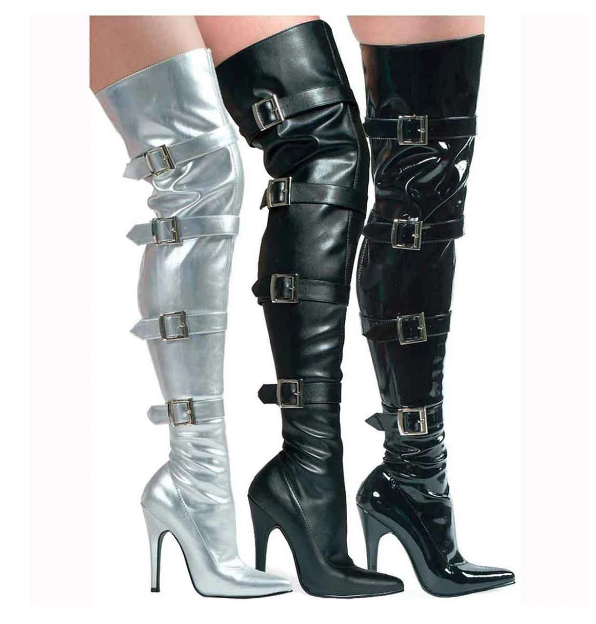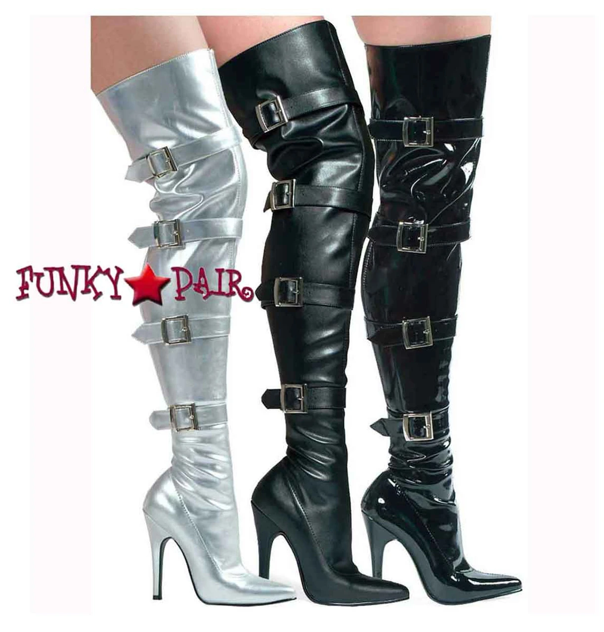 Ellie Shoes 511-Buckleup Approximately 5 Inch Stiletto Heel stretch Thigh High Boots with 4 buckle Straps, inner side zippers