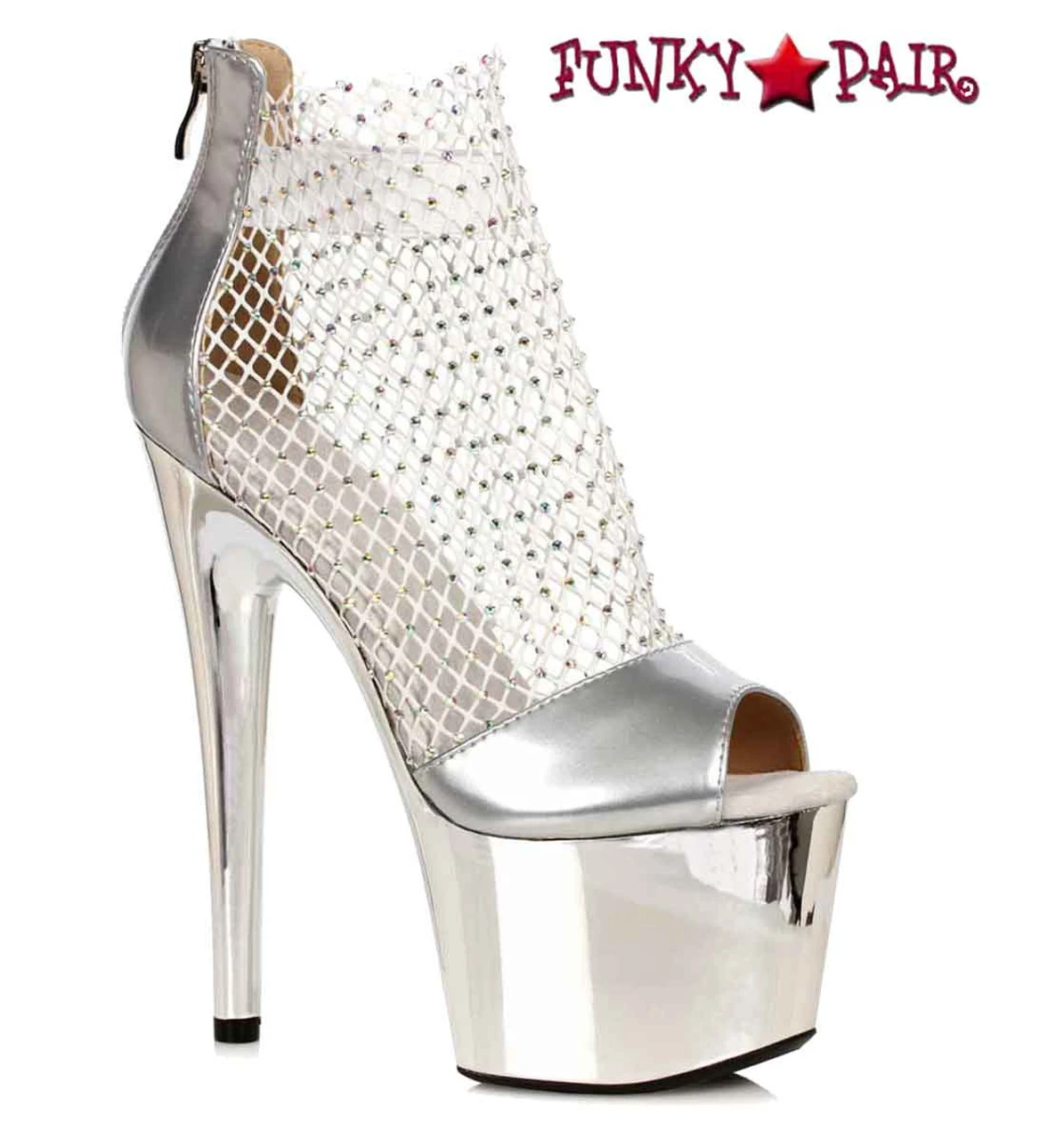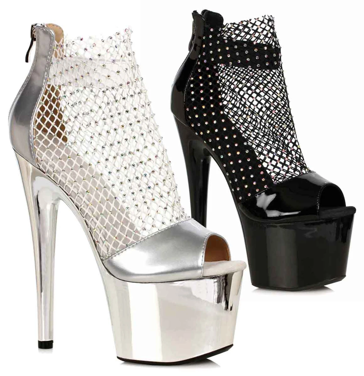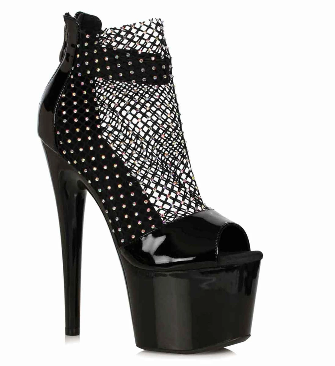 Approximately 7″ Fishnet Rhinestone Ankle Boot