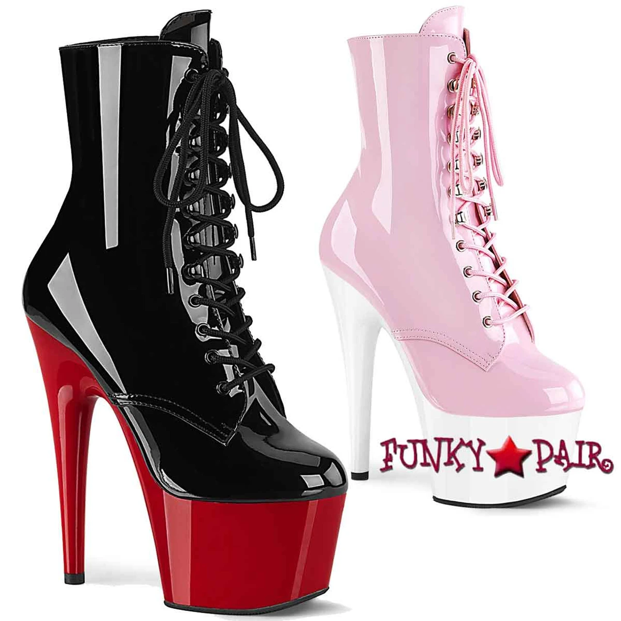 7″ (178mm) Heel, 2 3/4″ (70mm) Platform Two Tone Lace-Up Front Ankle Boot, Inner Side Zip Closure