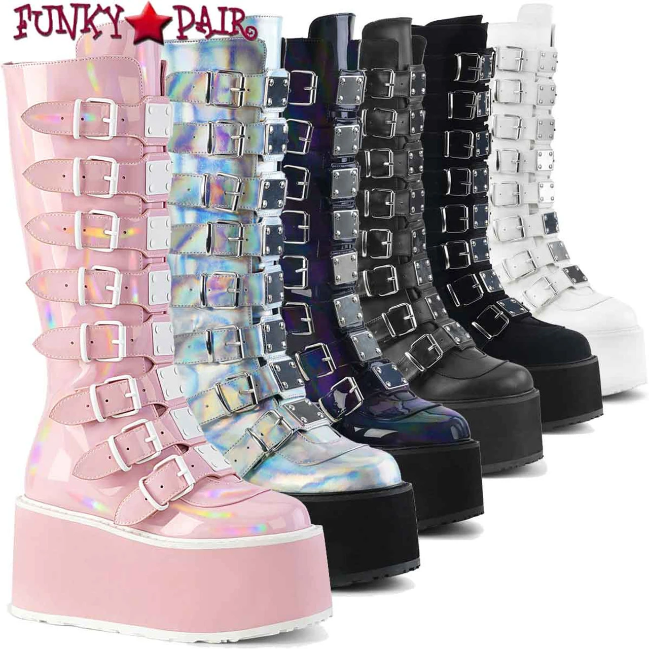 Make a statement with these Damned-318 Knee High Boots! Featuring chrome-plated buckles, this edgy design will be sure to turn heads. Comes in a variety of colors to fit any occasion. Put your best foot forward and strut in style with these fierce yet funky boots!
