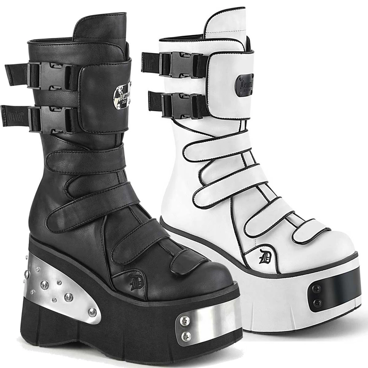 Be the talk of the town in Kera-108’s Front & Back Metal Plated Platform Strappy Mid-Calf Boot – where fashion and function meet! Featuring a front shield w/ metal plate center detail, dual snap buckles and hook & loop straps, and a full-length inside metal zip closure, these bad boys will have you struttin’ your stuff in style and comfort. Go ahead, show a little ankle!