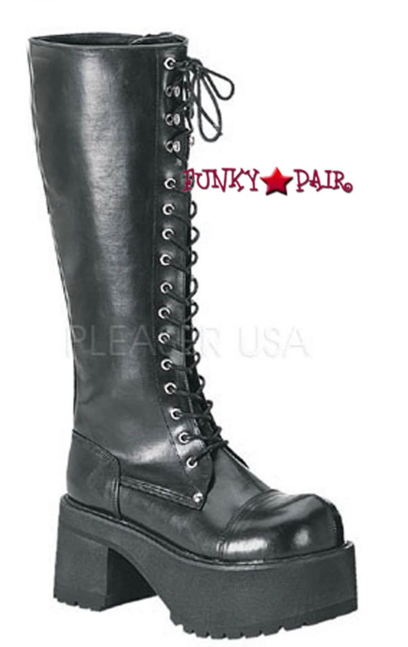 Demonia Men’s RANGER-302 Approximately 3.75 Inch Platform Goth Punk Knee High Boots with Side Zipper