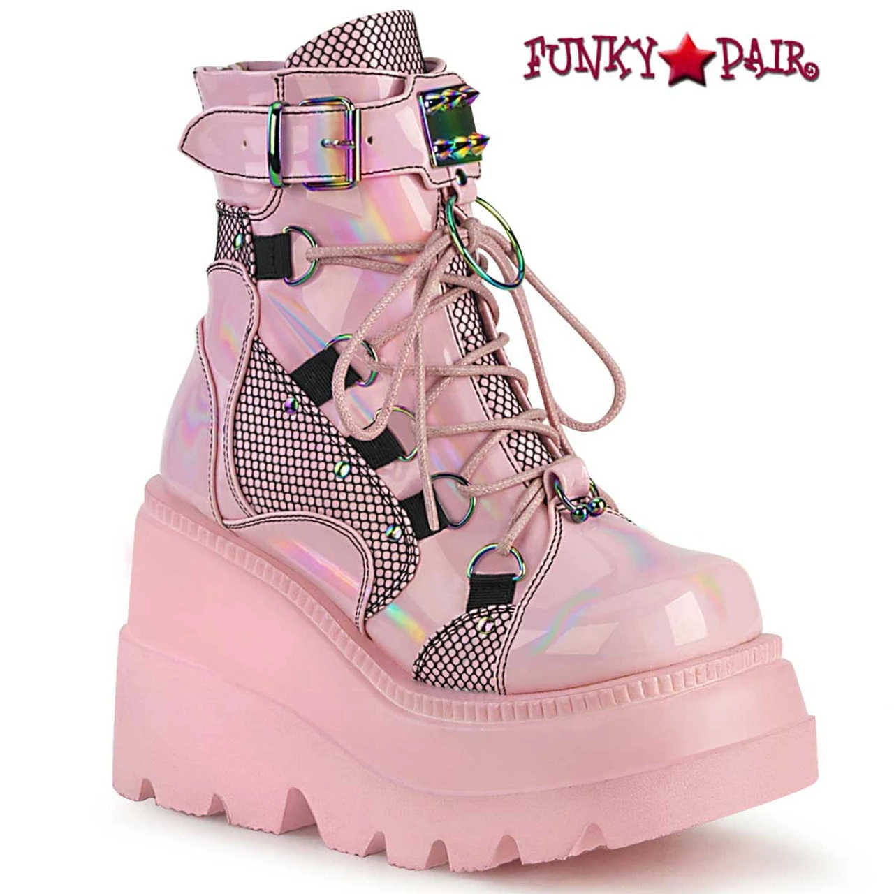 The Shaker-60 is a killer boot with some seriously punk rock style! This 4 1/2″ wedge boot is guaranteed to draw stares with its dual buckle ankle straps and studded contrast panels. And it’s not just a pretty face; the front center vamp features some totally metal hardware – horseshoe ring, spike studded metal plate, and large O-ring – before finishing off with a metal back zip closure. Rock on!