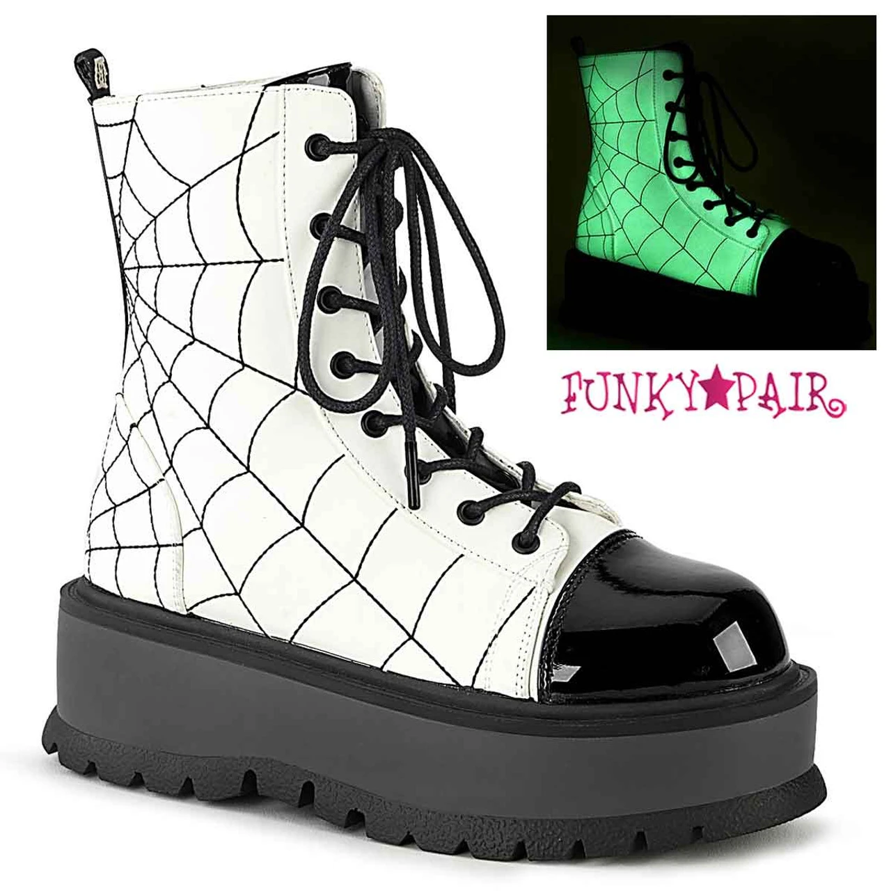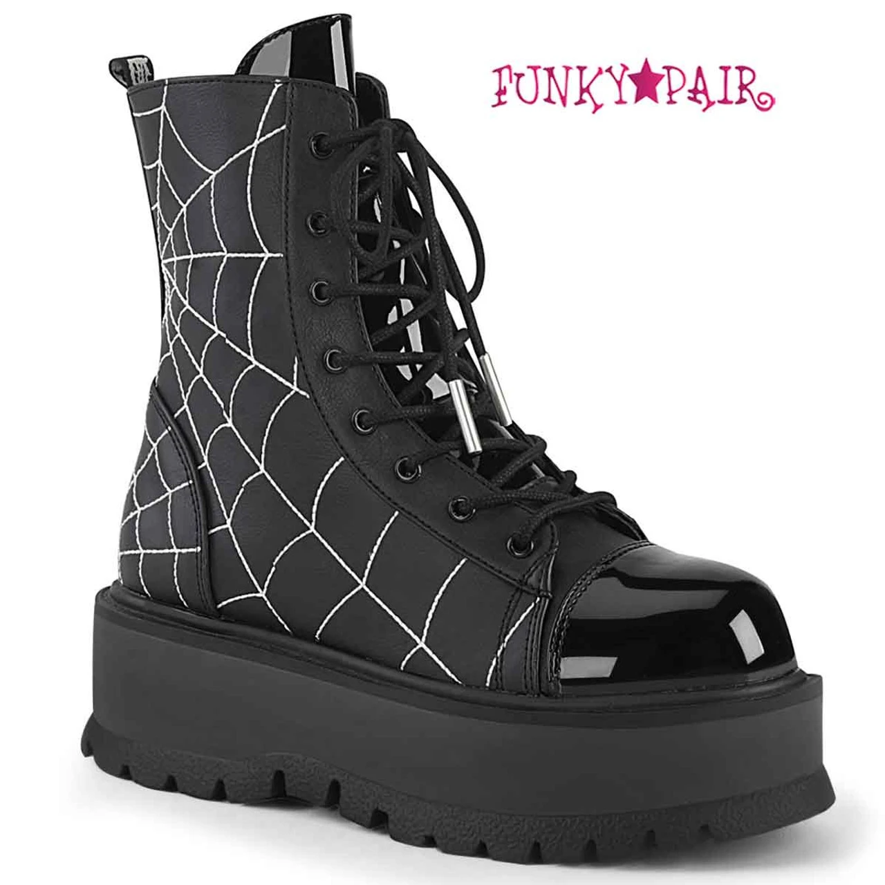 Ready to look your spookiest? These SLACKER-88 Mid-Calf Boots add a creepy-crawly vibe to any outfit with their spider web detailing and rugged sole. Step up your style game this Fall! ?