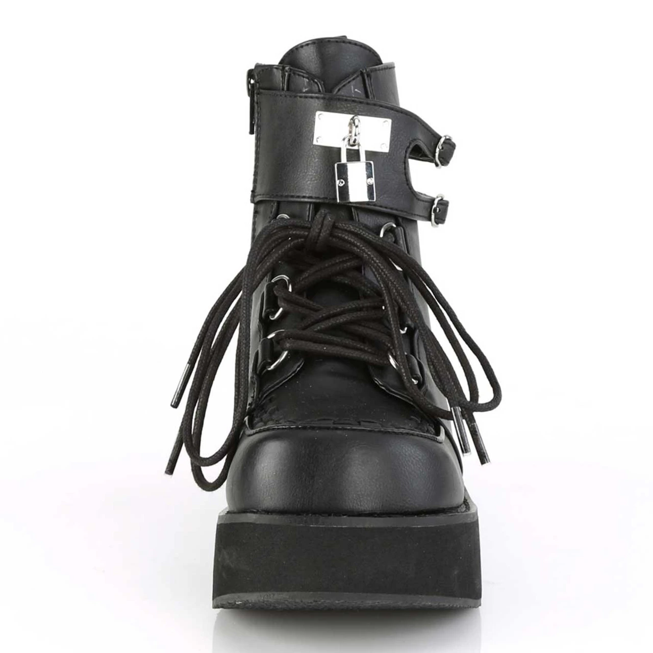 From our range of ankle boots, the Sprite-70 is a fashionable choice. Boasting an adjustable ankle cuff with metal lock charm, interwoven apron & piping detail and an inside zip closure, it delivers comfort and style you can rely on. The 2 1/4 inch (57mm) platform heel adds the perfect finishing touch.