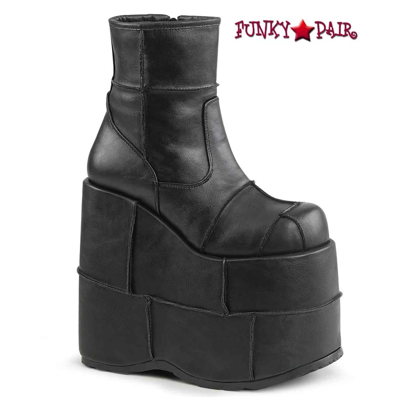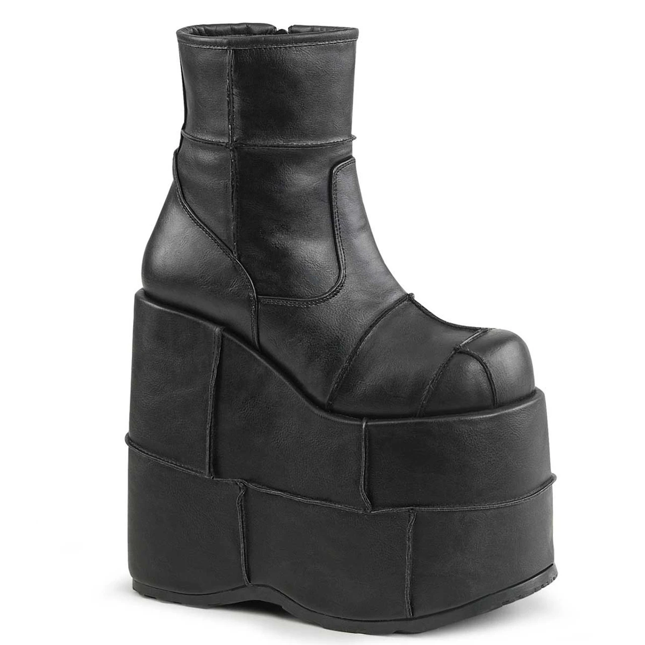 Demonia Men’s Stack-201 Approximately 7 Inch Platform Ankle Boot With Patching Details on Platform and Vamp, Side Zip