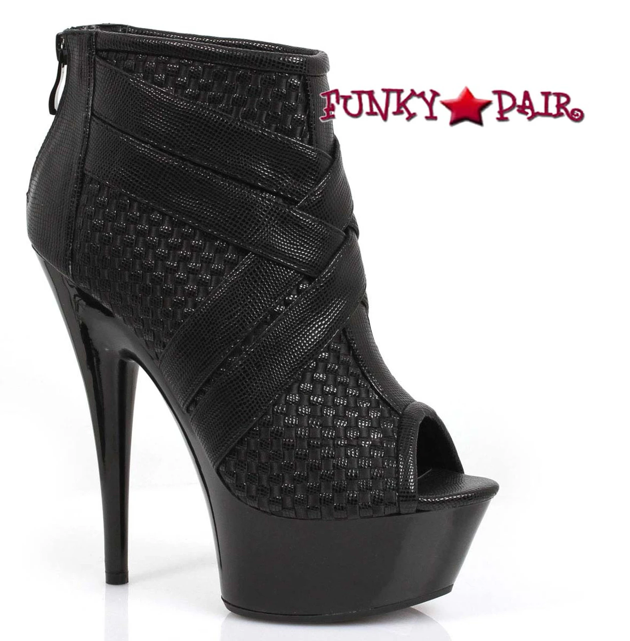 Ellie Shoes 609-Monic Approximately 6 inch high heel peep toe platform Ankle Boots with criss cross straps. Back zipper