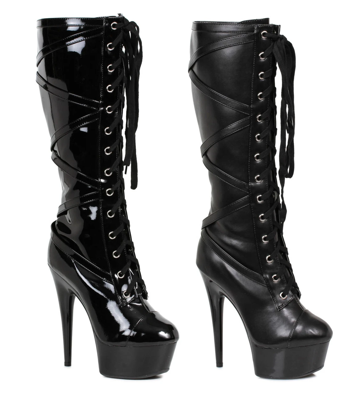 Ellie Shoes 609-Pocky Approximately 6 inch high heel lace up Boots with inner pocket and criss cross design