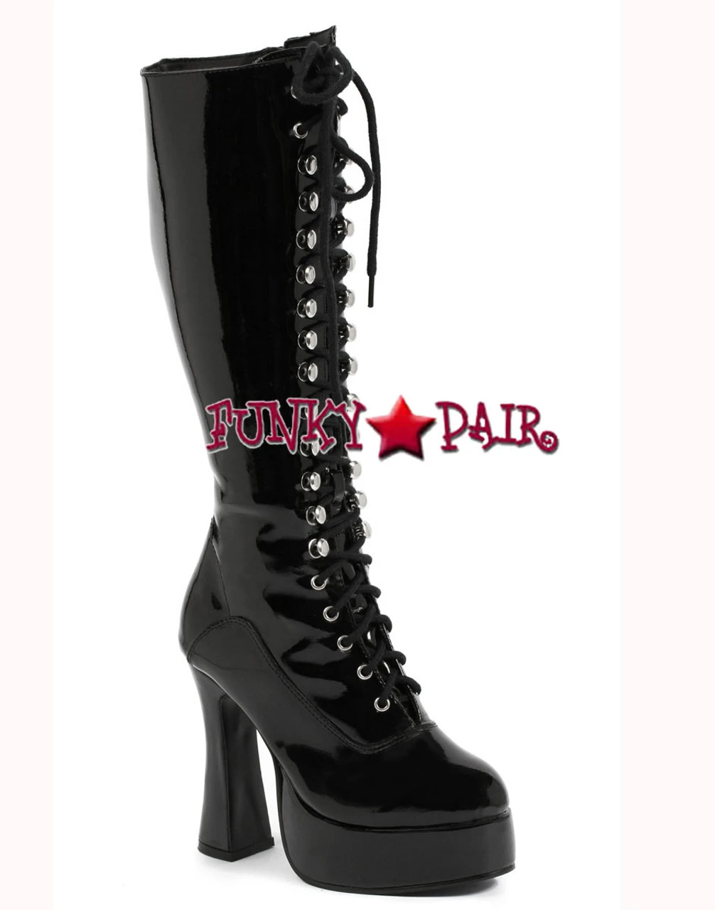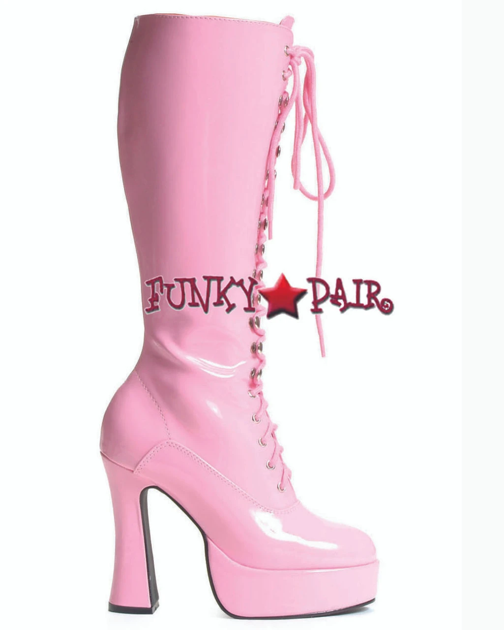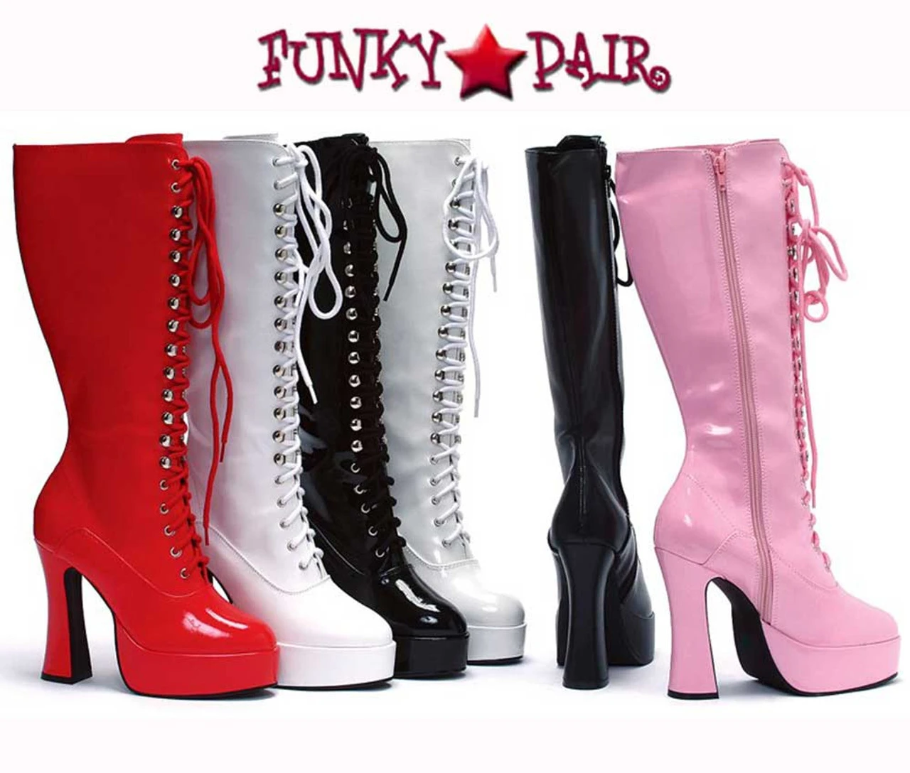 Ellie Shoes Easy Approximately 5 Inch Chunky Heel Platform GoGo Boots with lace up, inners side zipper See more GoGo Boots under Knee High Boots Catergoriy or click here >Â Knee High GoGo Boots We have some goes up to size 16 and many colors and style to choose from.
