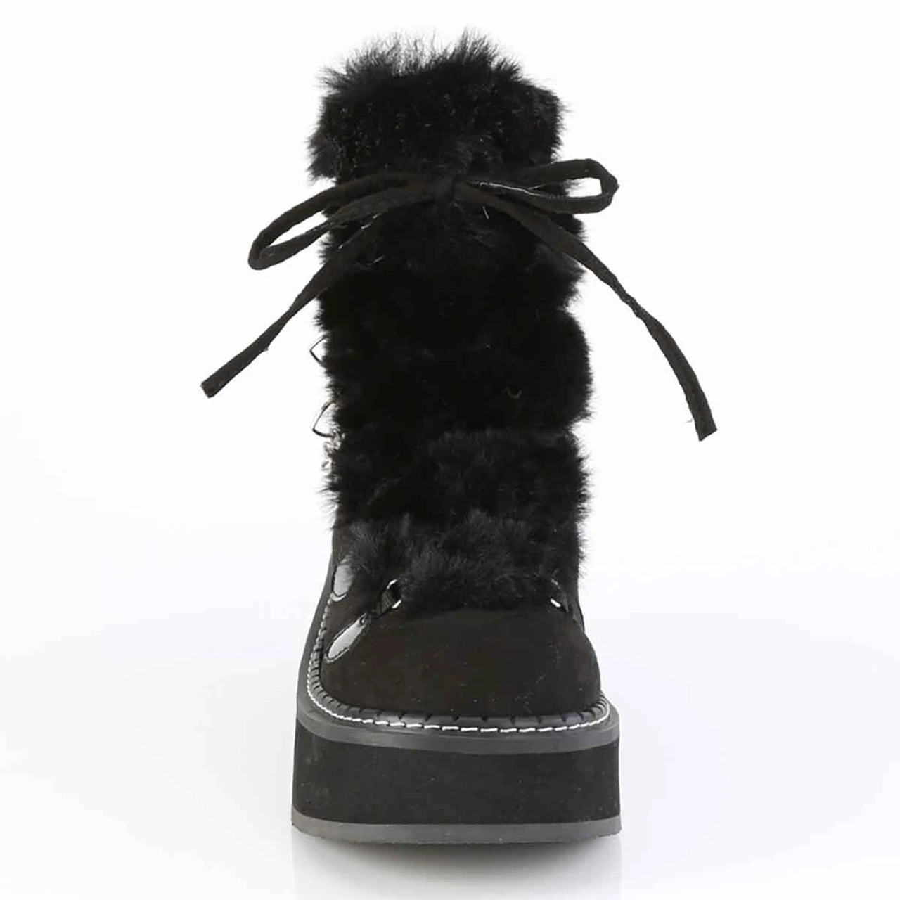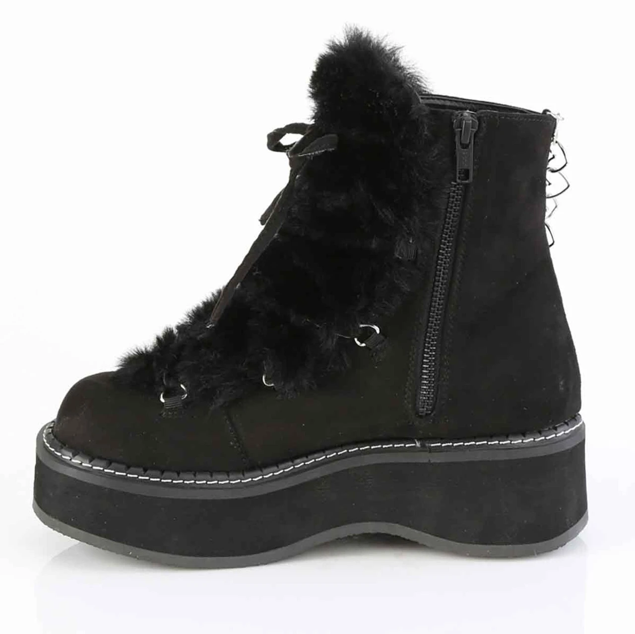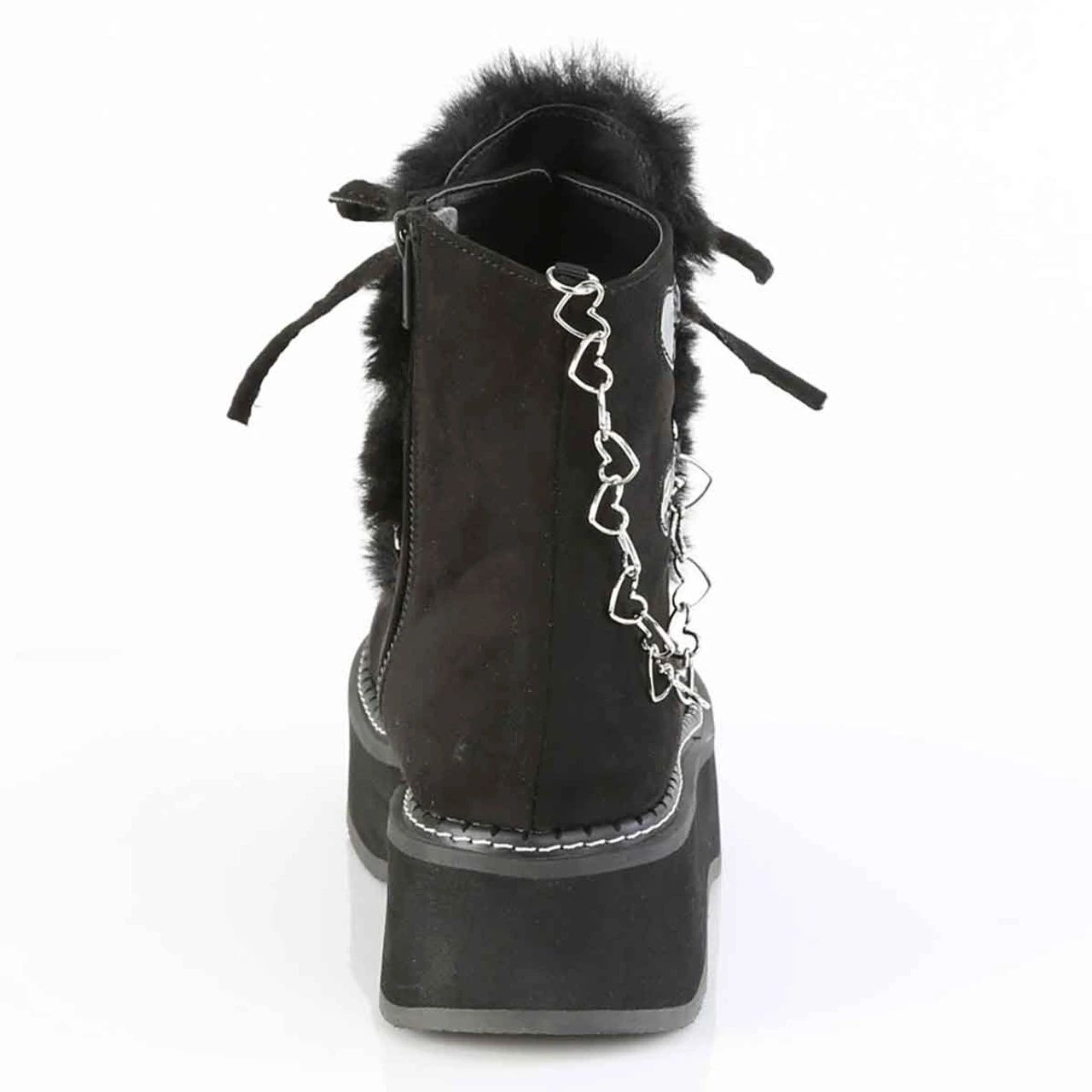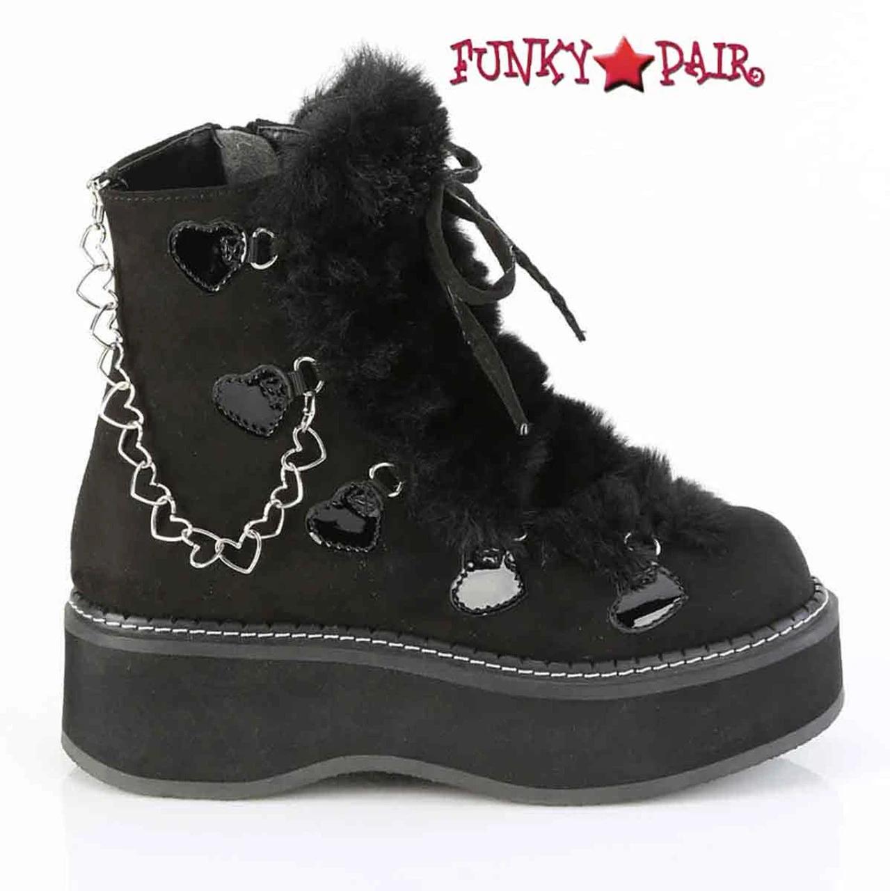 2″ (51mm) Platform D-Ring Lace-Up Front Ankle Boot Featuring Fur Covered Tongue , Contrast Heart Appliques & Hanging Heart Chain Details, Inside Metal Zip Closure