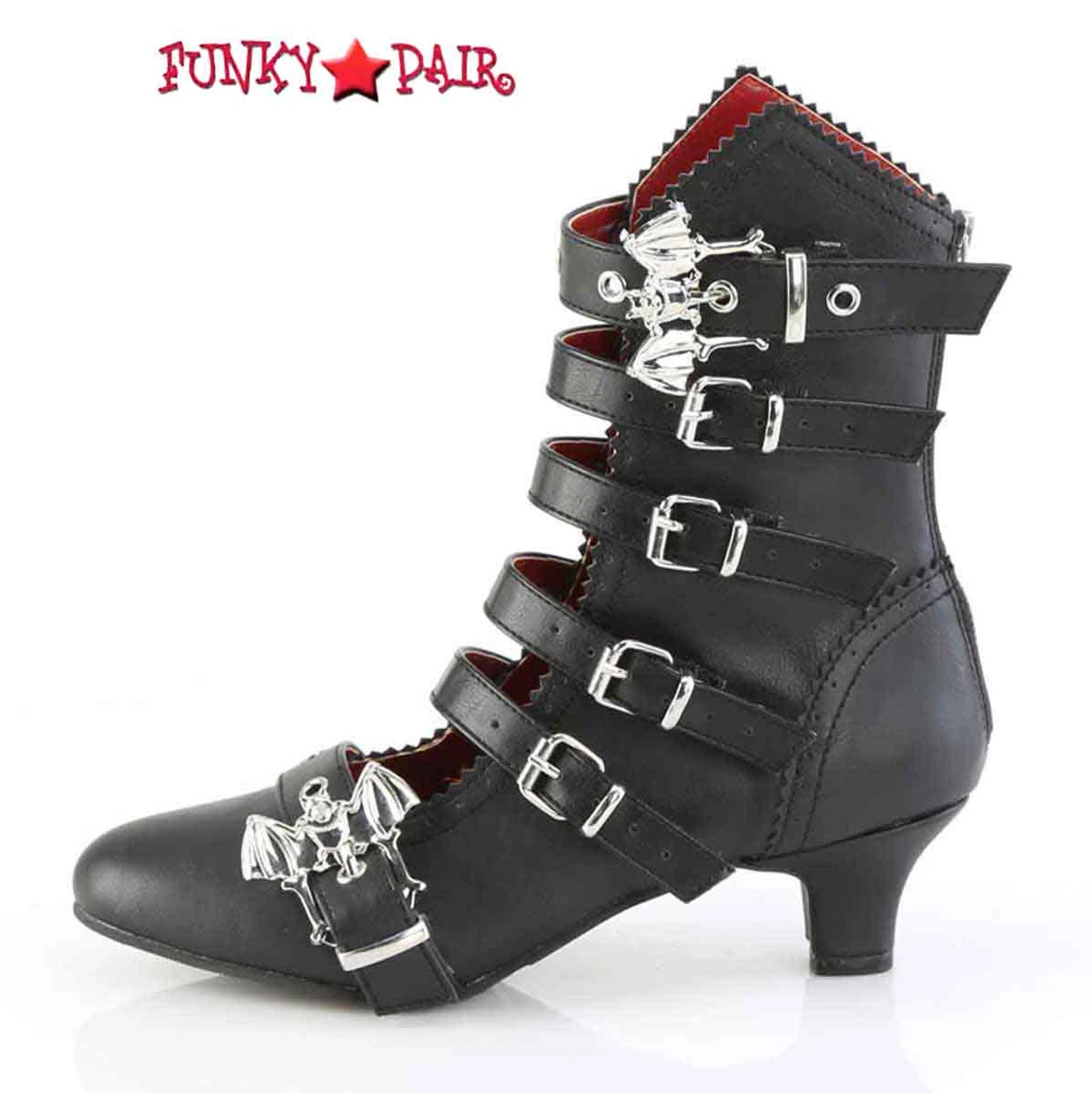2″ (51mm) Heel Open Front Mid-Calf Boot Featuring Regualr & Bat Buckle Straps and Scalloped Edges, Back Metal Zip Closure