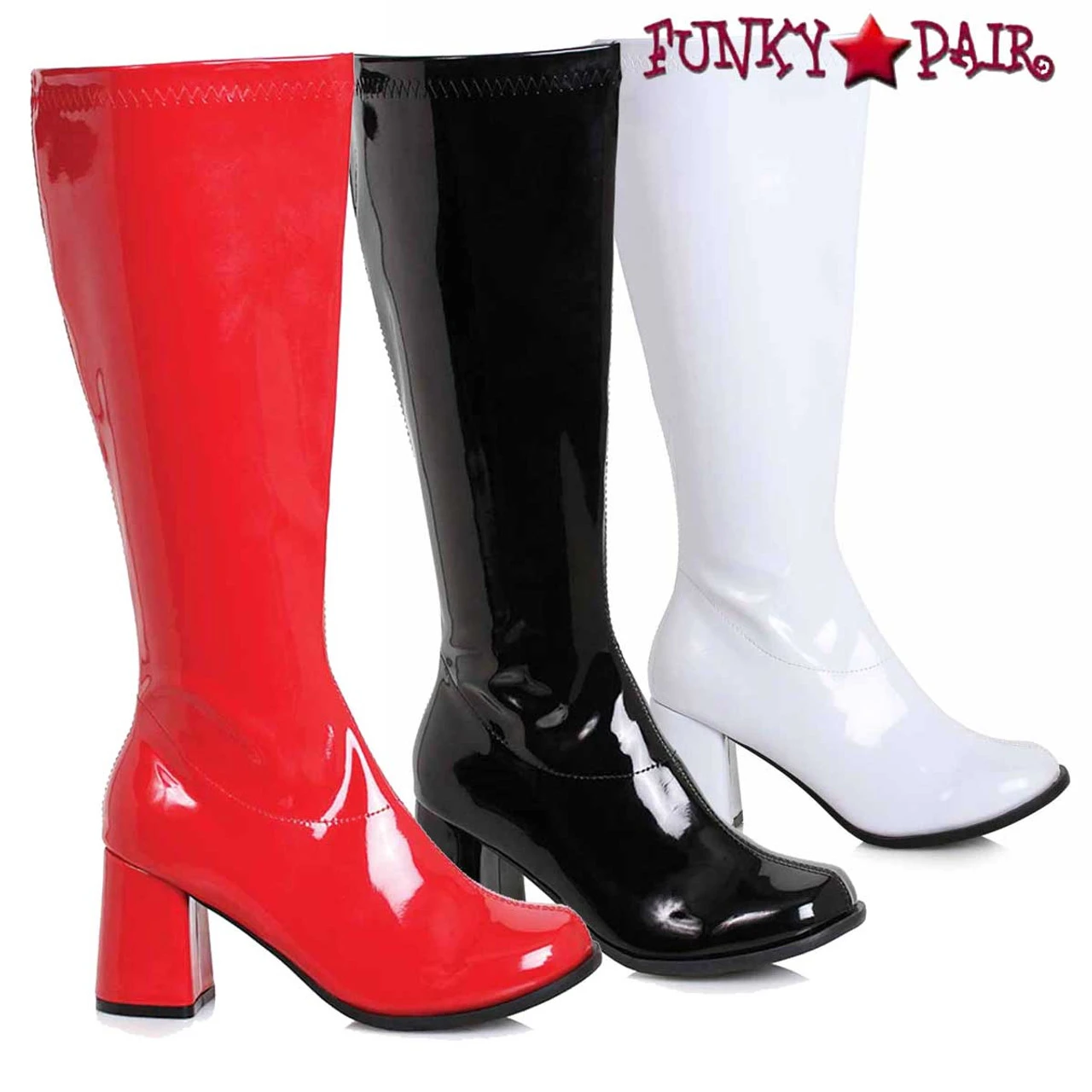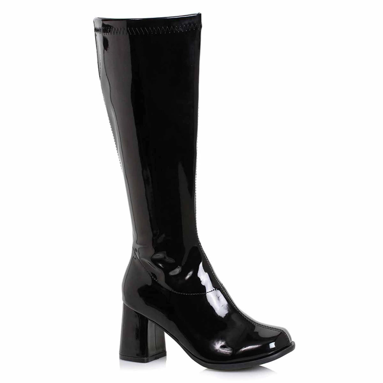 Approximately 3 inch block heel wide calf knee high gogo boots with side zipper