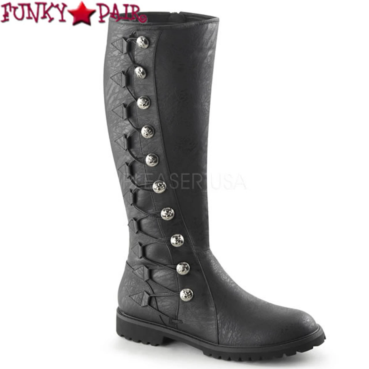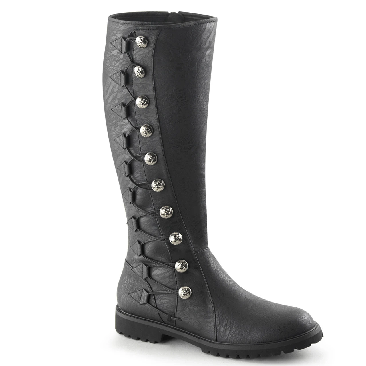 1.5 inch flat heel knee high boots with button lace-up, zipper on side