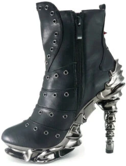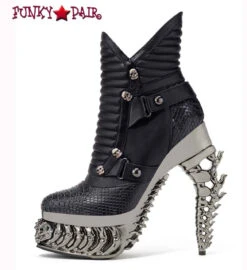 Hades Footwear | Langdon Knee high platform boots w/ oxford tuxedo fabric overlapped with matching thundra PU layer. Criss cross side straps secured w/ bronze eyelets & flame buckles. Matching fur lined on top and side. Inner zipper. 3.5? steam engine chunky heel.