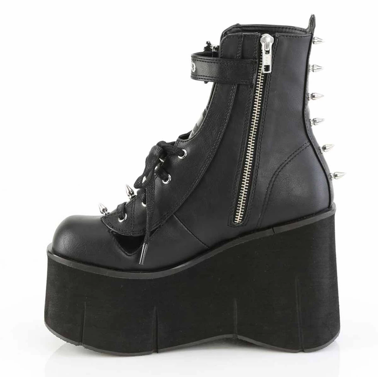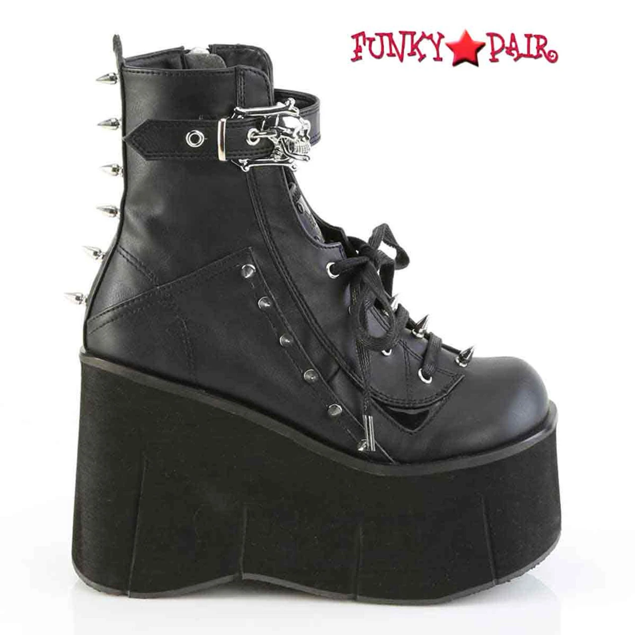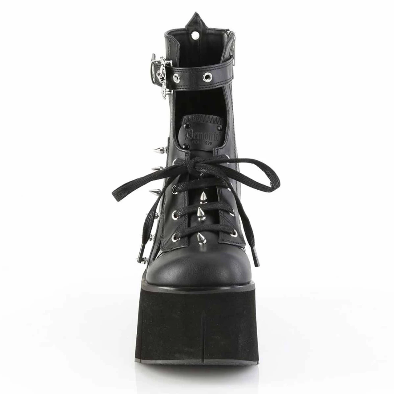 4 1/2″ (114mm) Platform Lace-Up Front Ankle Boot Featuring Top Skull Buckle Strap & Metal Spike Stud Details, Inner Side Metal Zip Closure