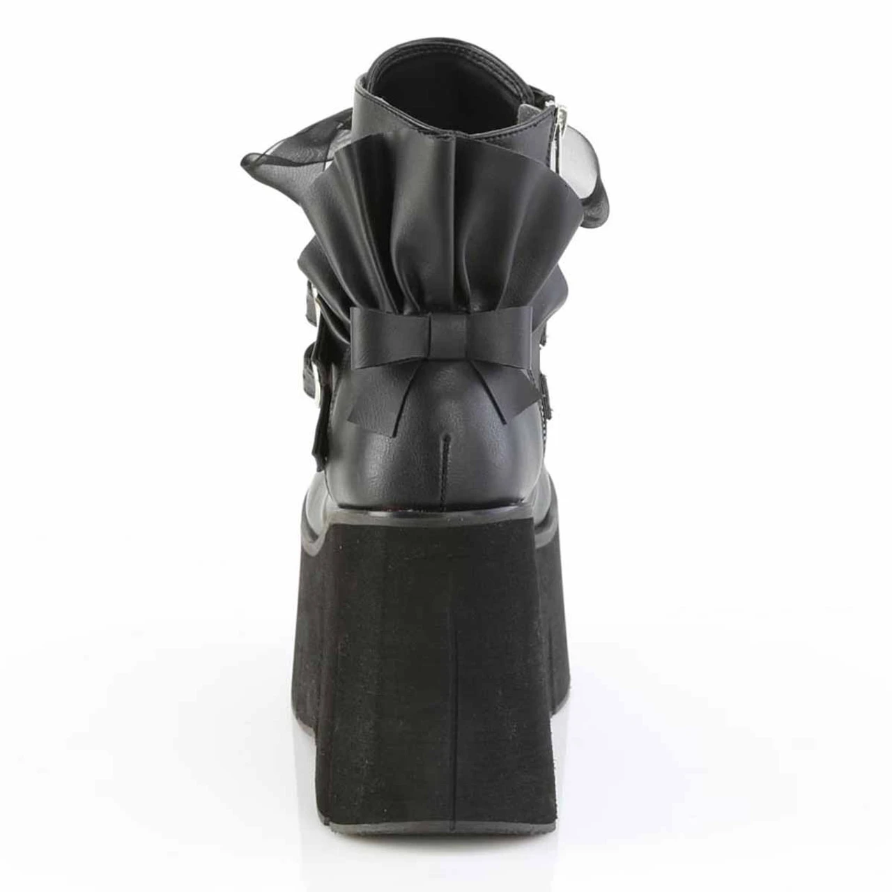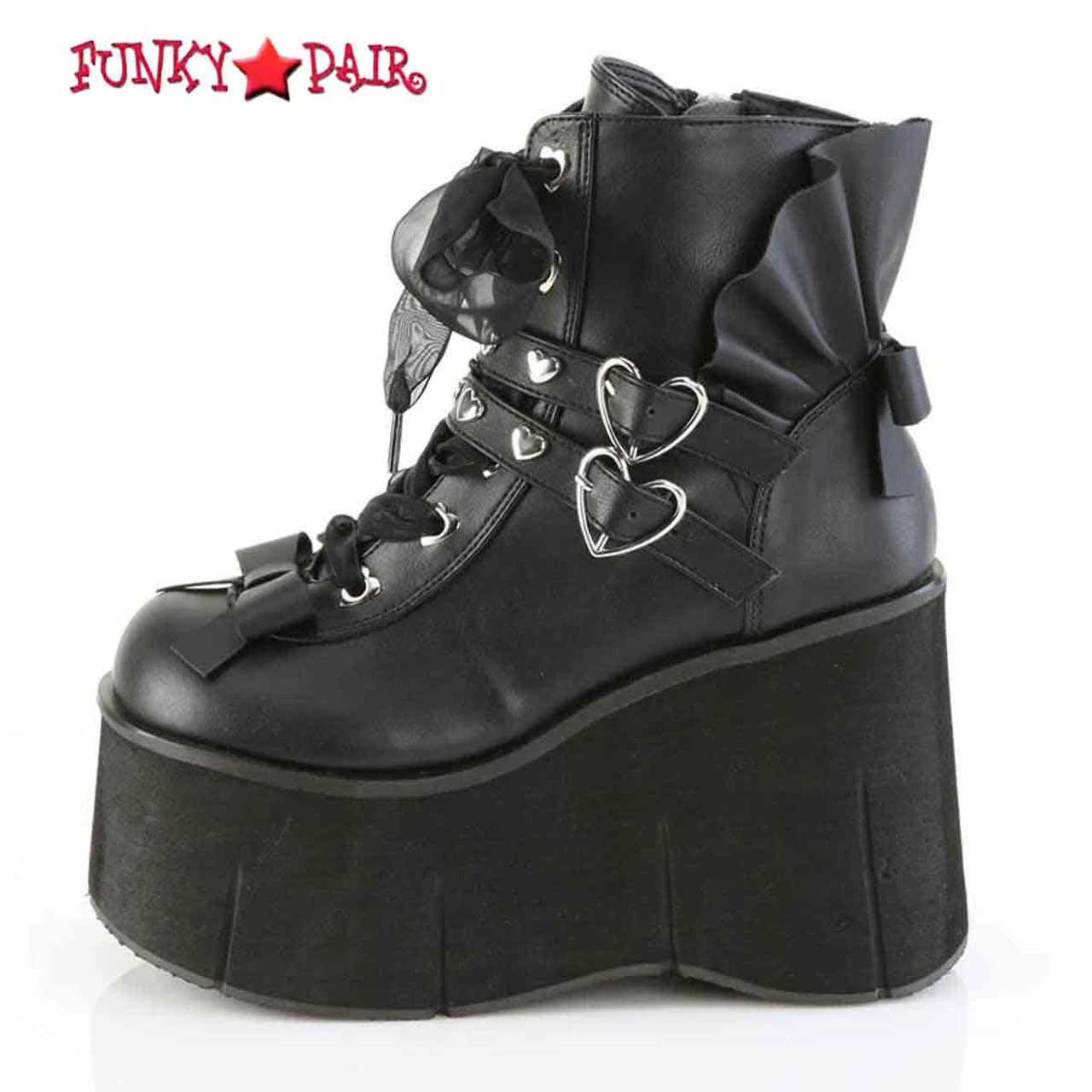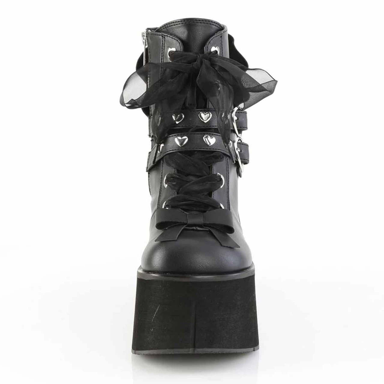 4 1/2″ (114mm) Platform Sheer Ribbon Lace-Up Front Heart Eyeletted Ankle Boot Featuring Double Heart Studded Straps w/ Heart Buckles and Ruffle & Bow Details, Inner Side Metal Zip Closure