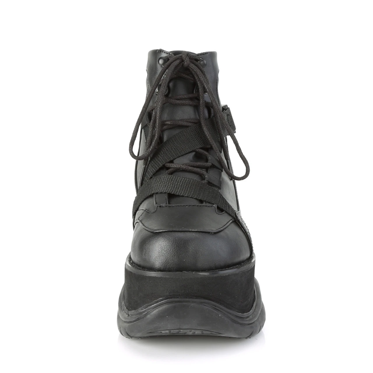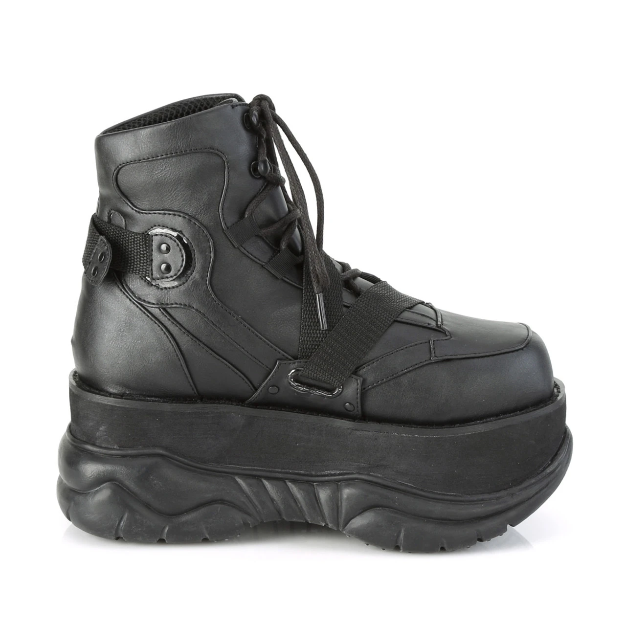 3″ (76mm) Platform Lace-Up Front Ankle Boot Featuring Zig-Zag Strap w/ Quick Release Plastic Buckle