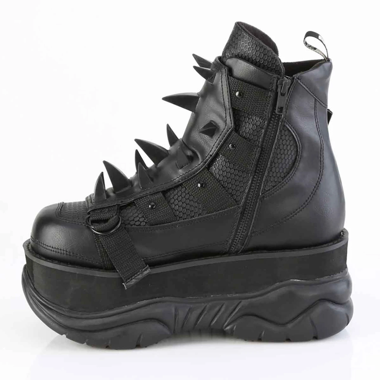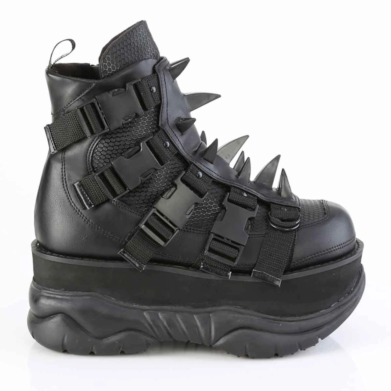 3″ (76mm) Platform Buckle Ankle Boot Featuring Coffin Shaped Rubber Claw Spike Studded Shield w/ Quick Release Plastic Buckles