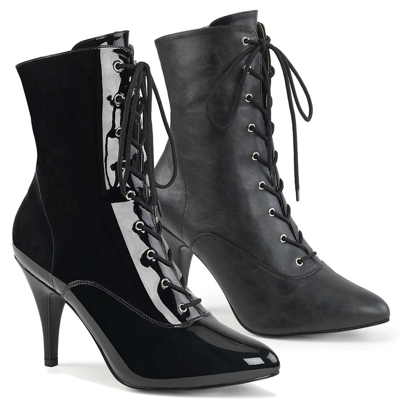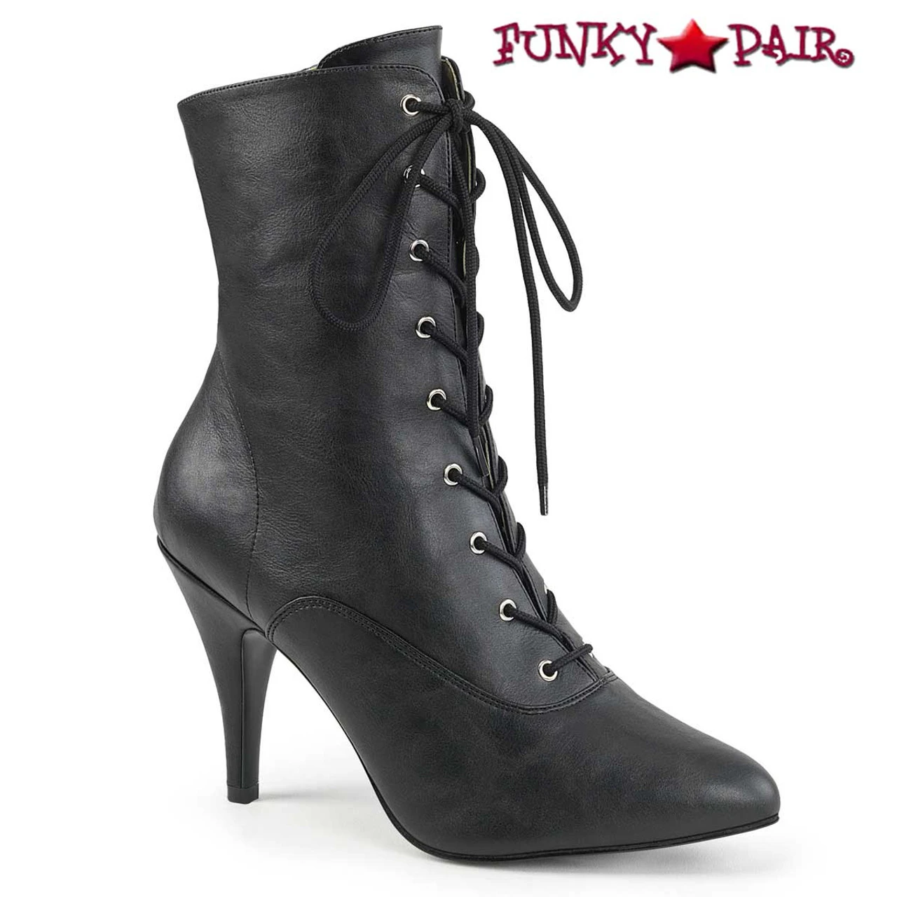 Dream-1020, Ankle Boots | Pleaser Pink Label Available Size 9 – 17 Approximately 4 Inch (10 cm) Heel Lace Up Front Ankle Boots, Featuring Full-Length Inside Zip Closure. Drag friendly. Trans friendly.