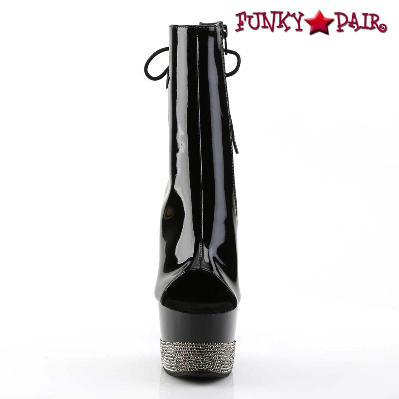 Pleaser Adore-1018-3 Approximately 7 Inch (17.75cm) Heel, 2 3/4 Inch (7cm) PF Open Toe/Heel Lace-Up Back Ankle Boots w/Hidden Zip Pocket Featuring Rhinestones Encrusted All Over Lower PF Bottom, Inside Zip Closure