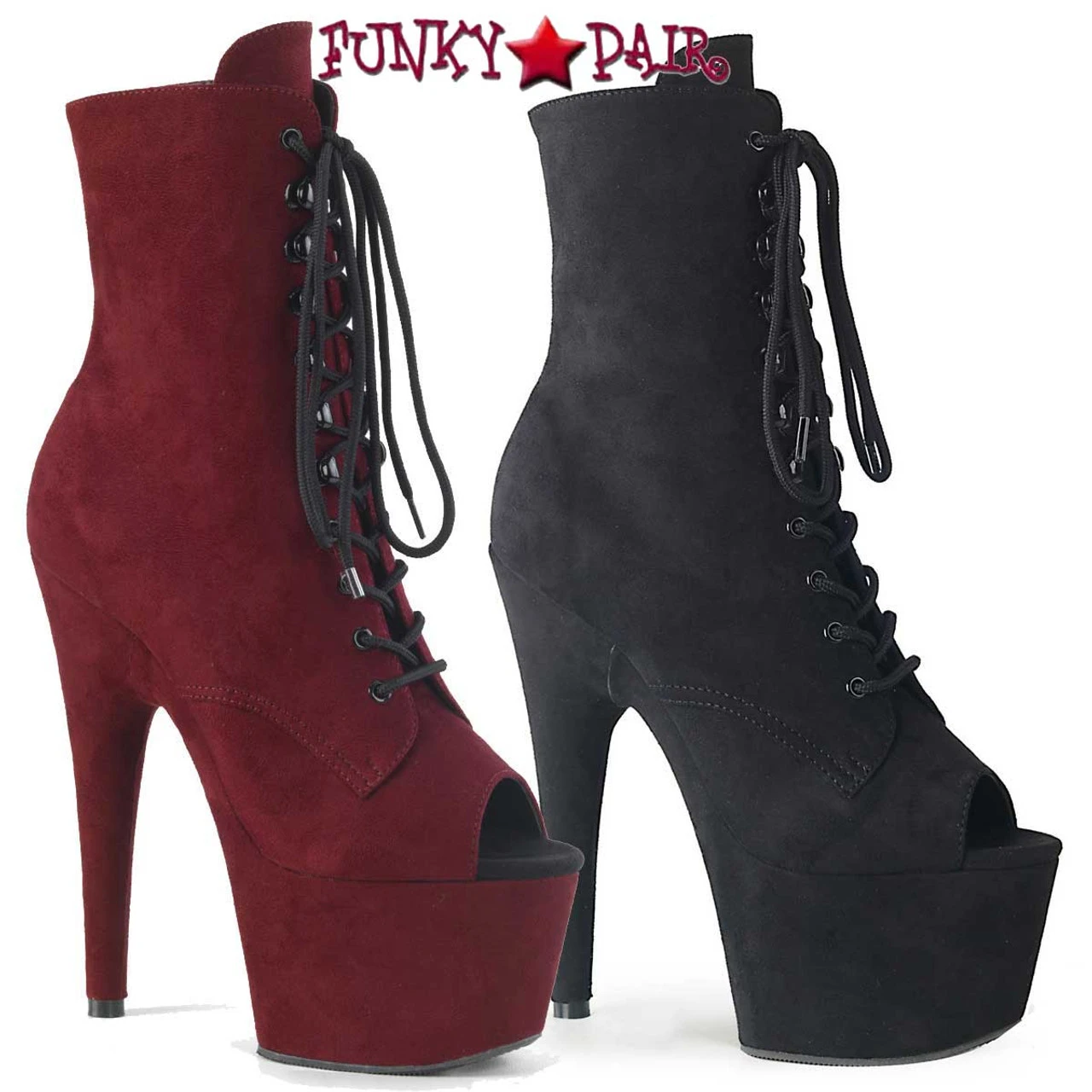 Pleaser Adore-1021FS, Approximately 7″ (178mm) Heel, 2 3/4″ (70mm) Platform Open Toe Lace-Up Front Ankle Boot Featuring Fully Wrapped Platform Bottom, Inside Zip Closure