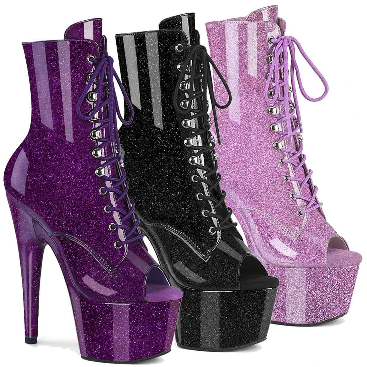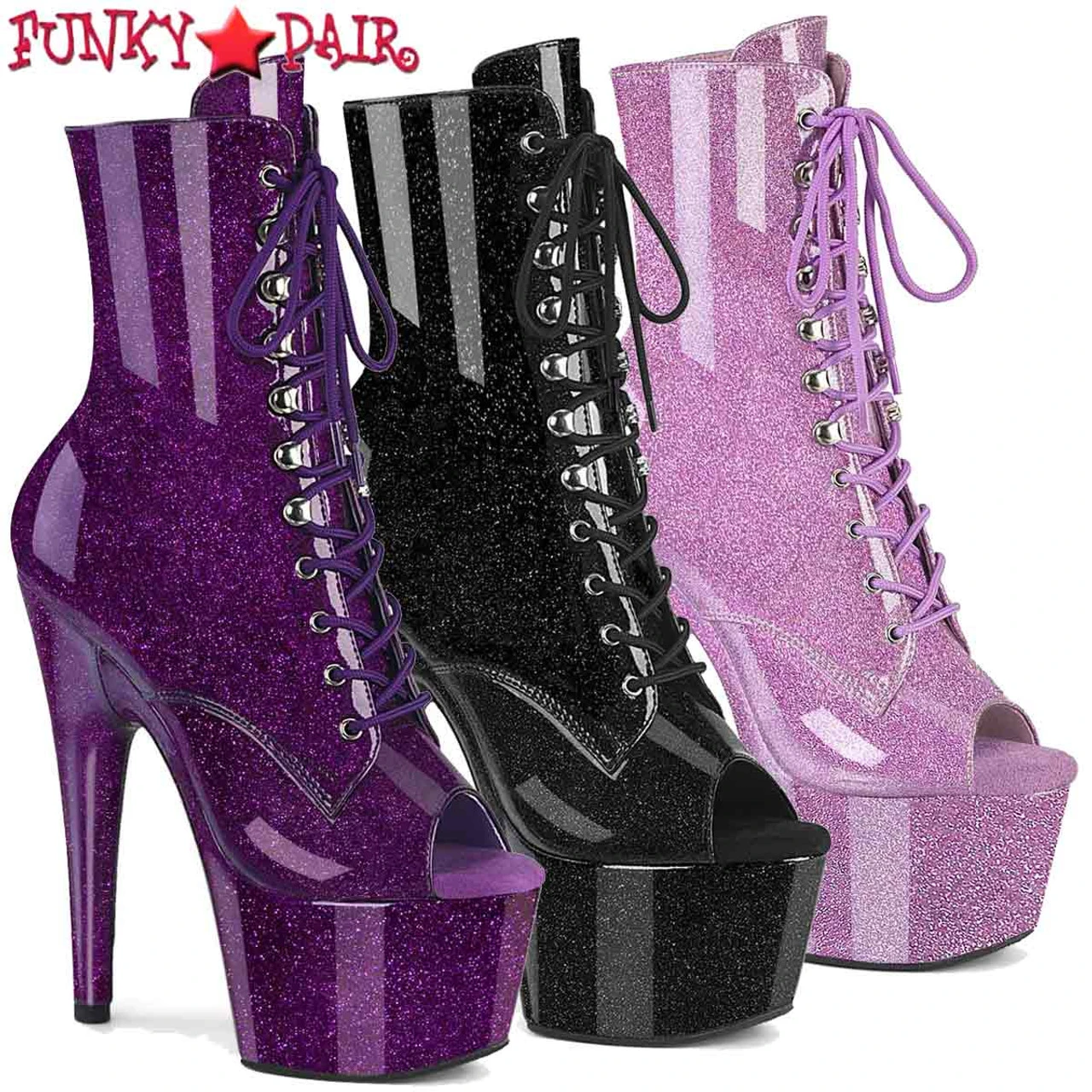 7″ (178mm) Heel, 2 3/4″ (70mm) Platform Peep Toe Lace-Up Front Ankle Boot, Inner Side Zip Closure