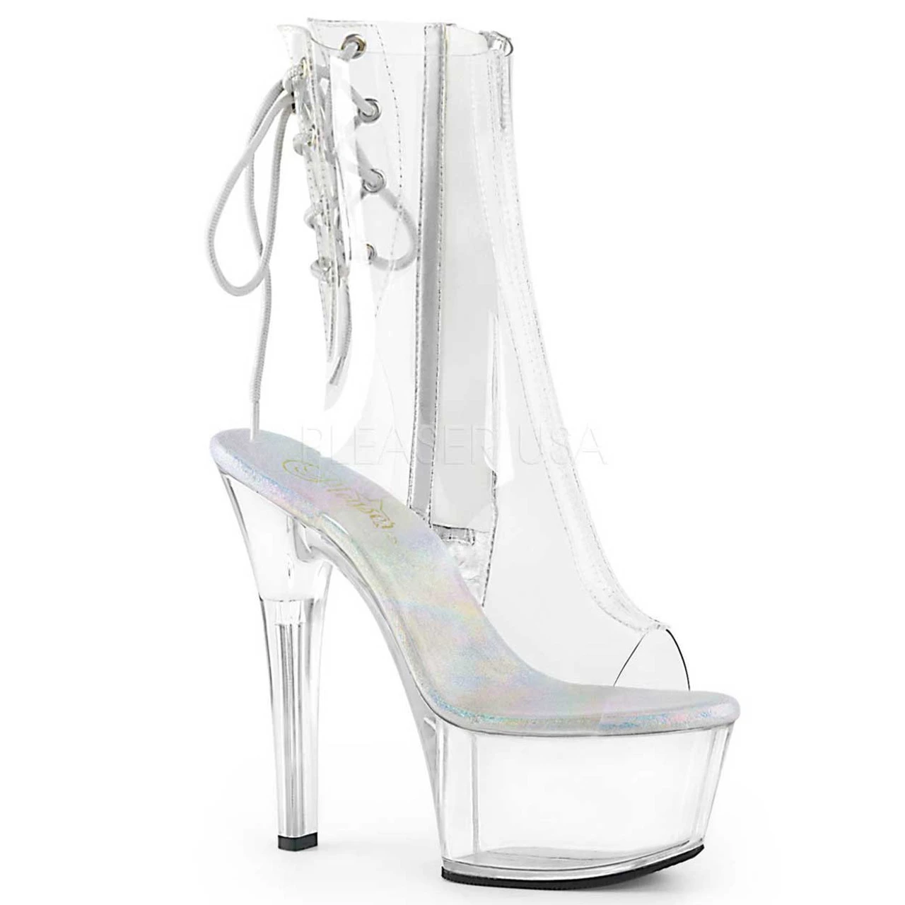 Pleaser Aspire-1018C, Approximately 6″ (152mm) Heel, 2 1/4″ (57mm) Platform Open Toe/Heel Lace Up Back Ankle Boot, Inside Zip Closure