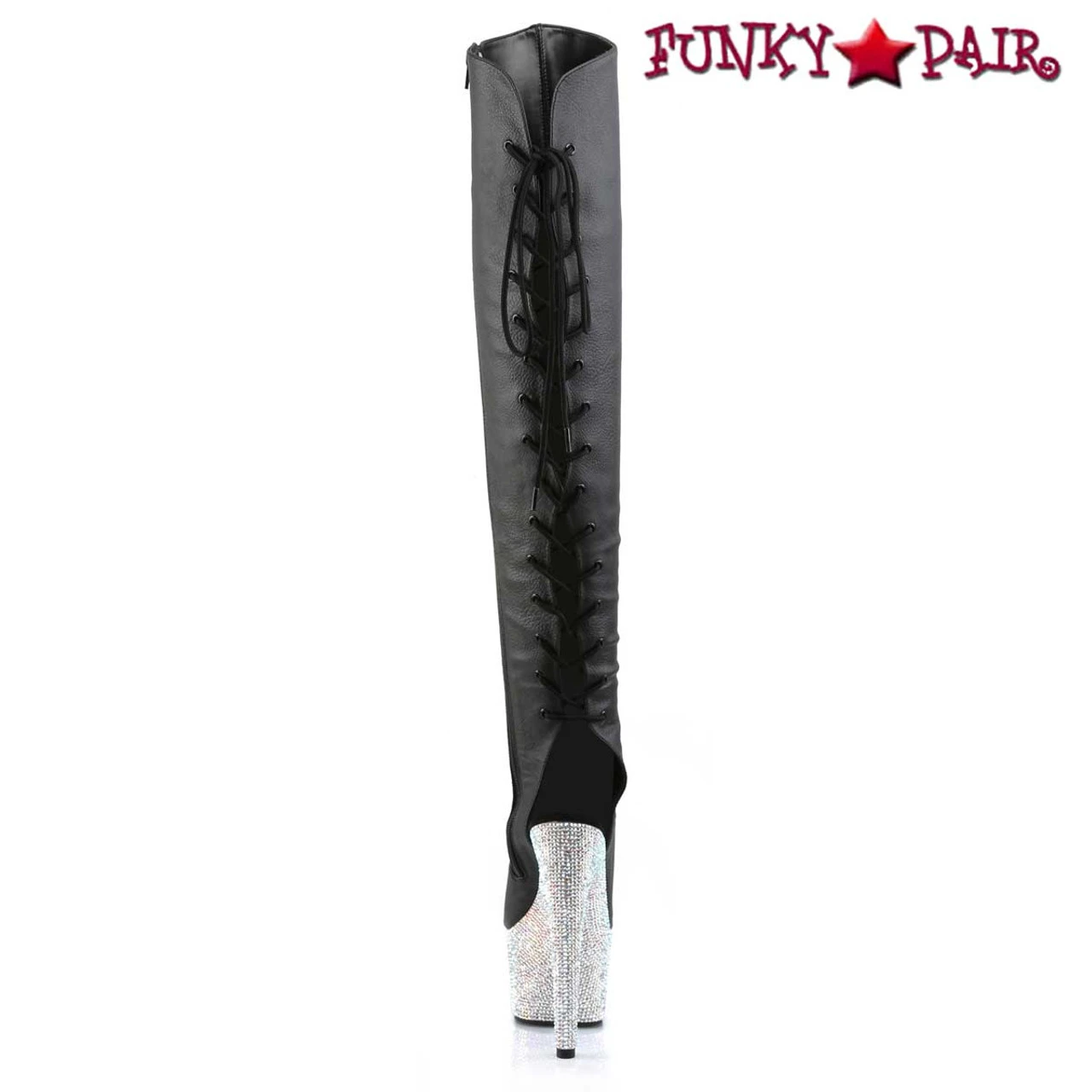 Pleaser Bejeweled-3019DM-7 7 Inch (17.75cm) Heel, 2 3/4 Inch (7cm) Platform Open Toe/Heel Lace-Up Back Thigh High Boots Featuring Slv Multi Rhinestones Covering Entire Platform Bottom, Inside Zip Closure
