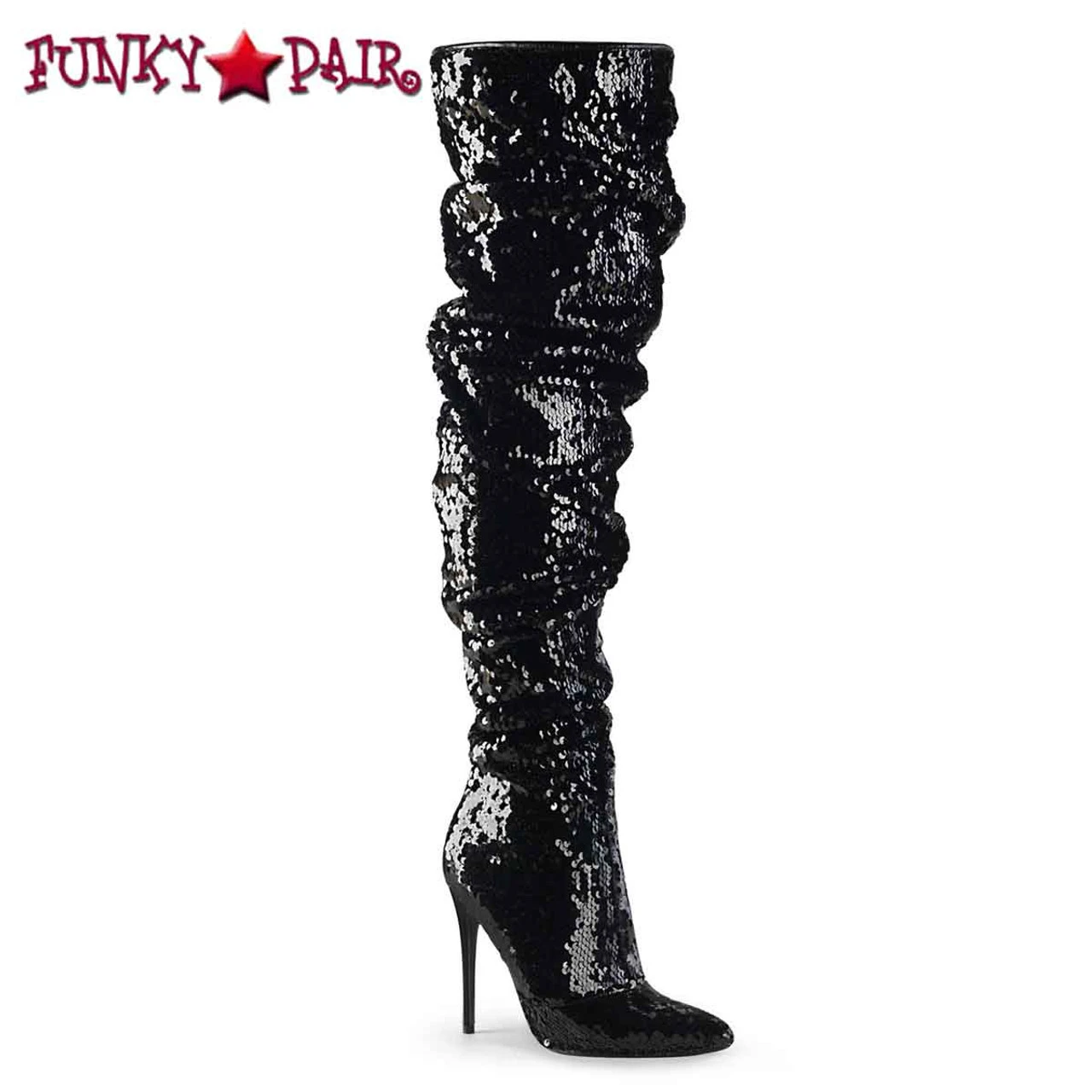 Pleaser Courtly-3011, Approximately 5″ (127mm) Heel Over-the-Knee Boot Featuring Ruched Slouchy Sequins Body, 1/3 Inside Zip Closure