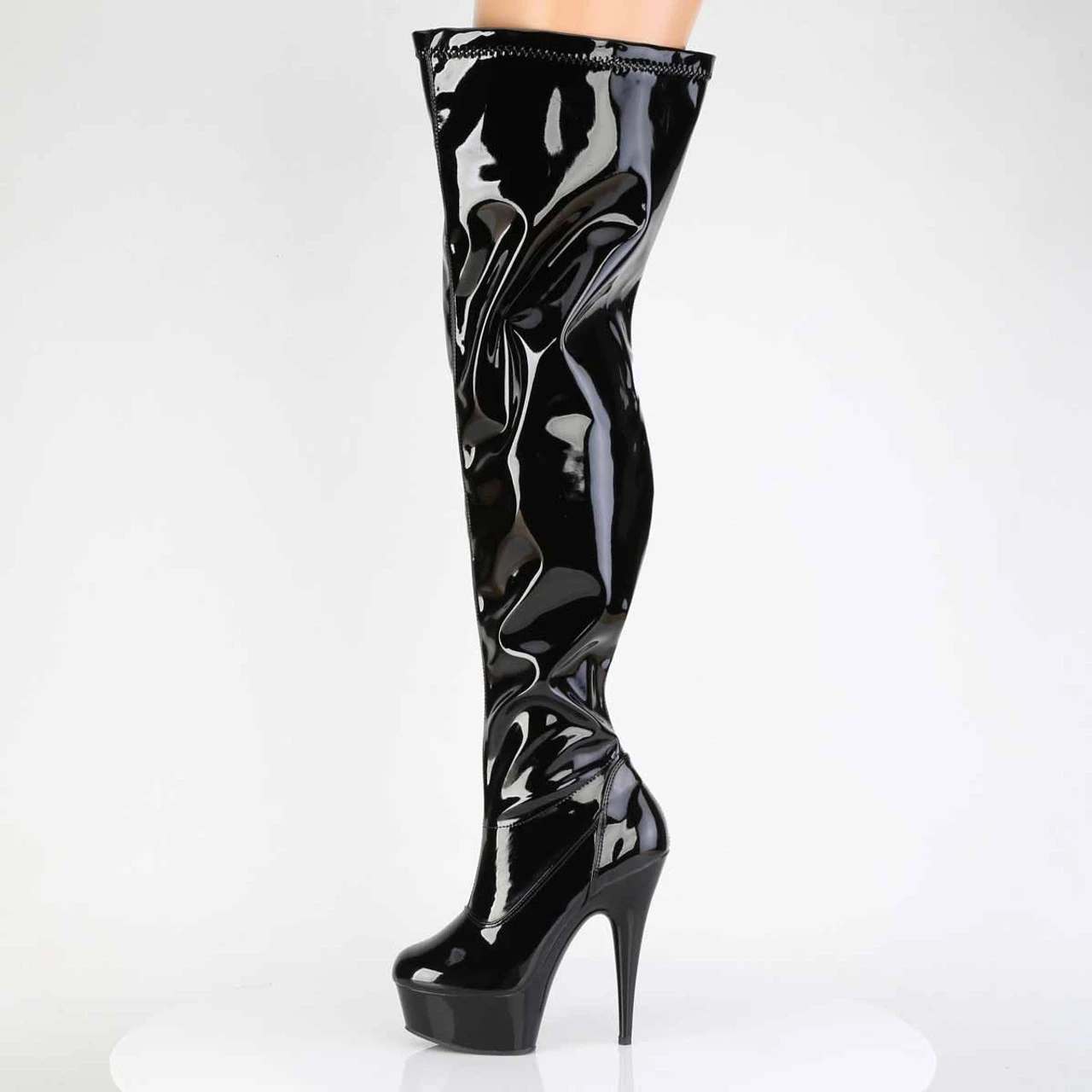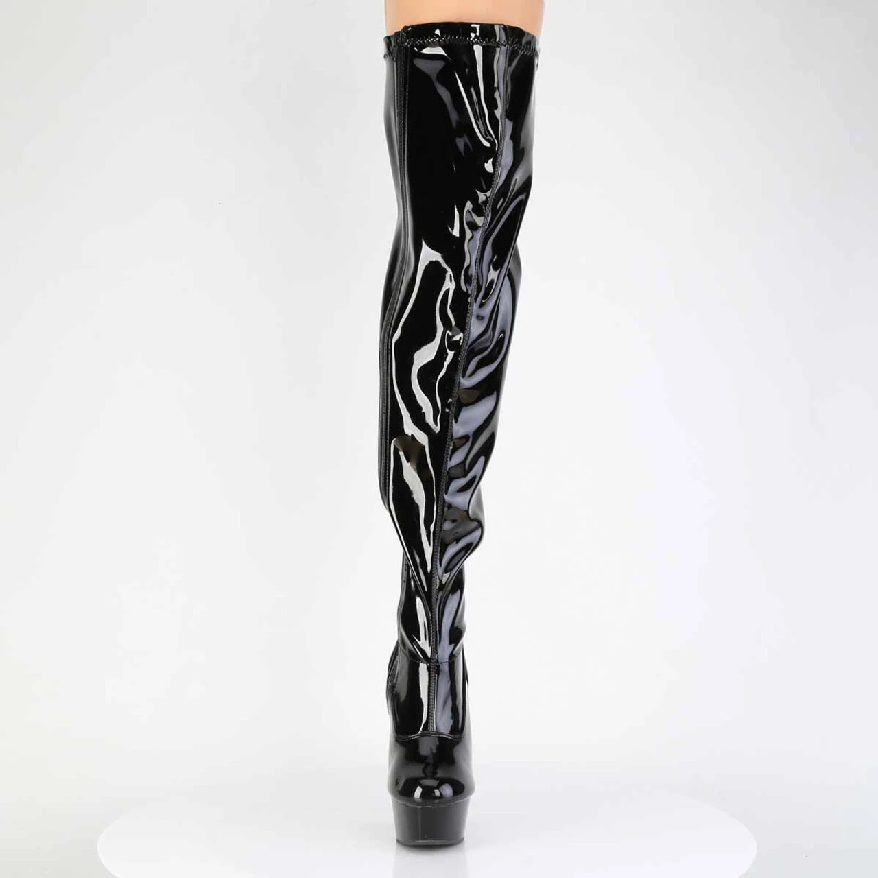 6″ (152mm) Heel, 1 3/4″ (45mm) Platform Wide Calf Plain Stretch Thigh High Boot, Full Length Inner Side Zip Closure