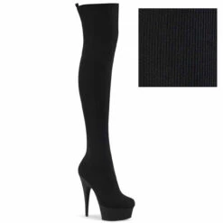 Pull-on Stretch Knit Thigh High Boot. Approximately 6″ (152mm) Heel, 1 3/4″ (45mm) Platform