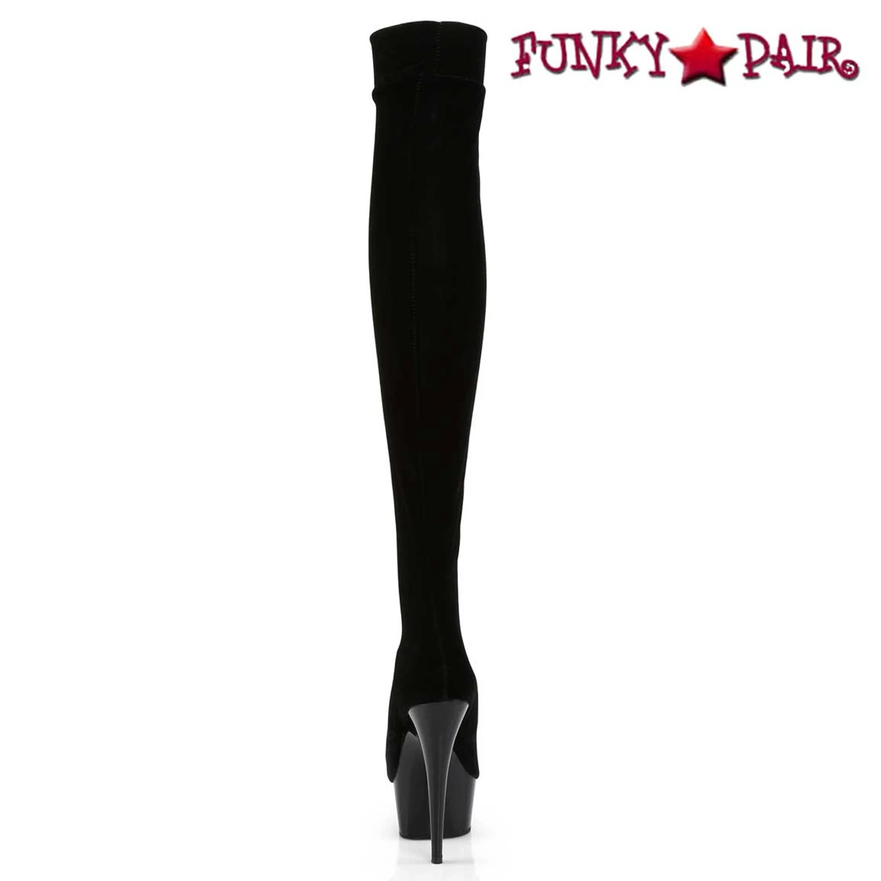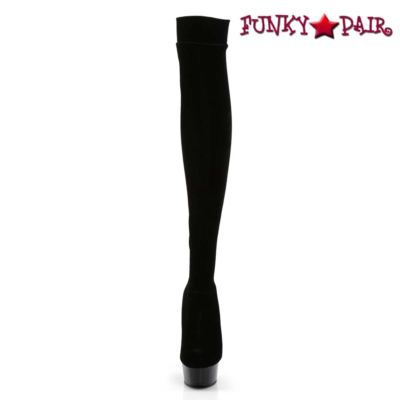 Pleaser Delight-3002 Approximately 6 Inch (15.2cm) Stiletto Heel, 1 3/4 Inch (4.5cm) Platform Stretch Thigh High Boots, No Zipper (Velvet)