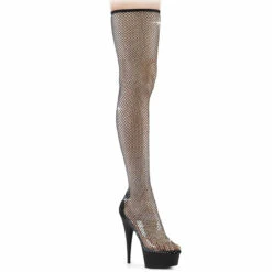 6″ (152mm) Heel, 1 3/4″ (45mm) Platform Pull-On Thigh High Boot Featuring Stretchable AB Rhinestone Mesh Fabric Upper