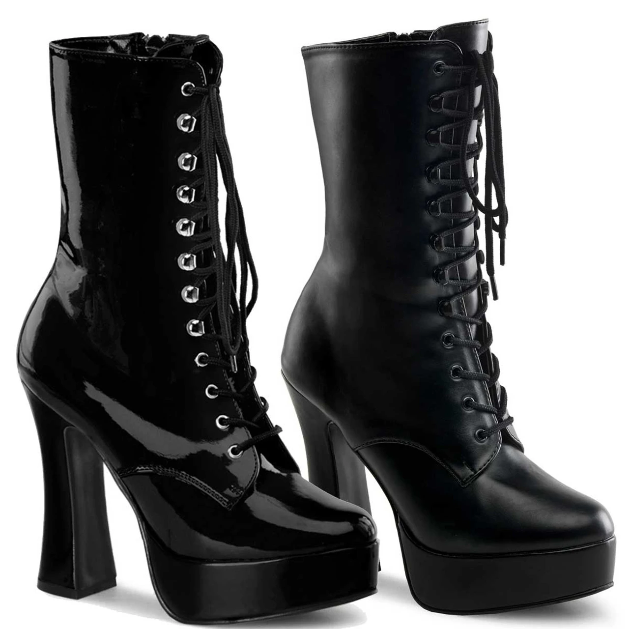 Pleaser ELECTRA-1020 Approximately 5 Inch (12.7cm) Stack Heel, 1 1/2 Inch (3.8cm) Platform Ankle Boots, Full Inner Side Zipper