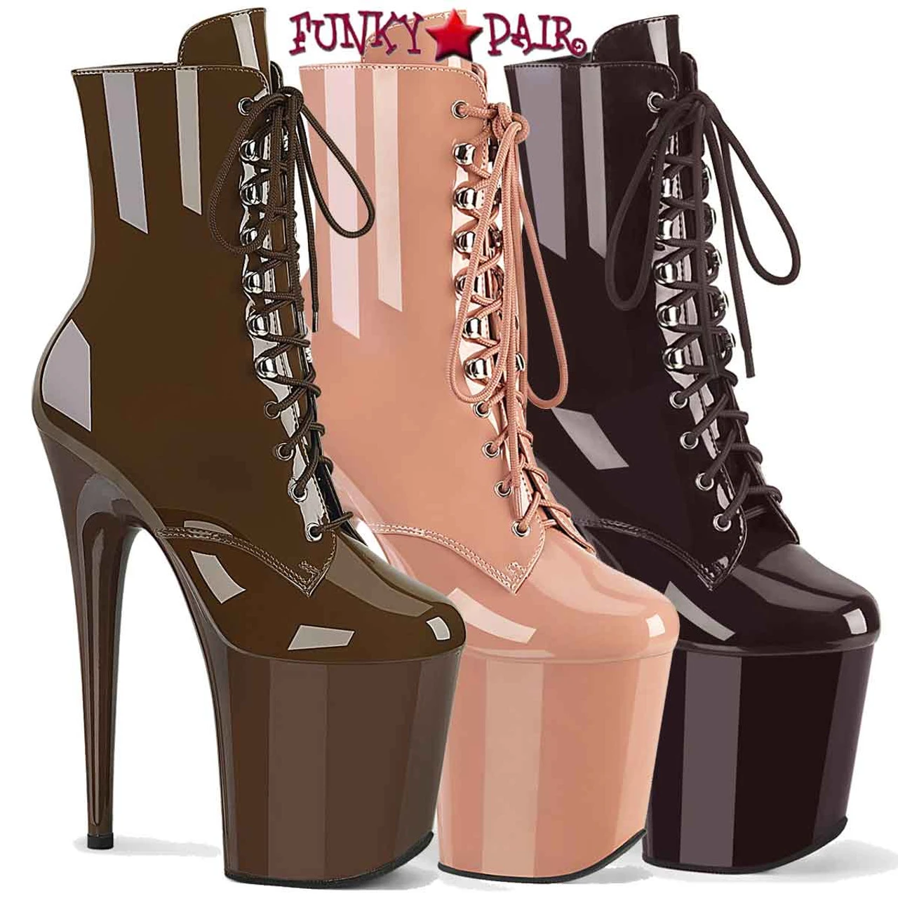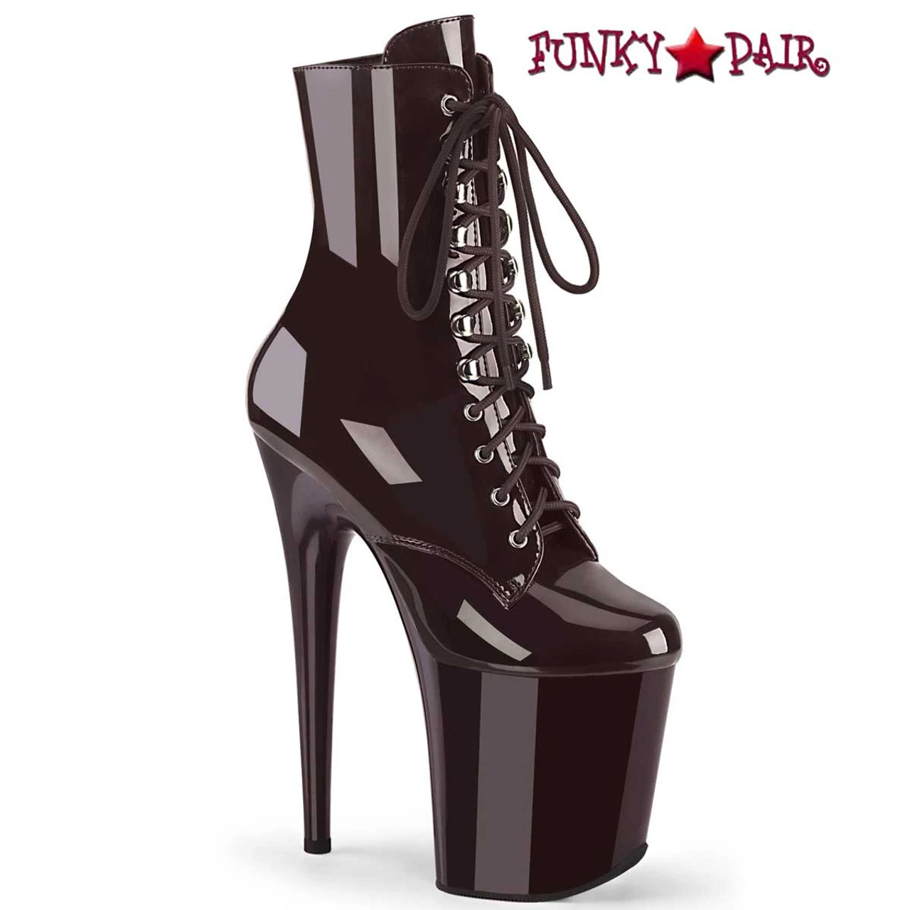 Pleaser Flamingo-1020 Approximately 8 Inch (20.25cm) Heel, 4 Inch (10.25cm) Platform Lace-Up Front Ankle Boots, Inside Zip Closure