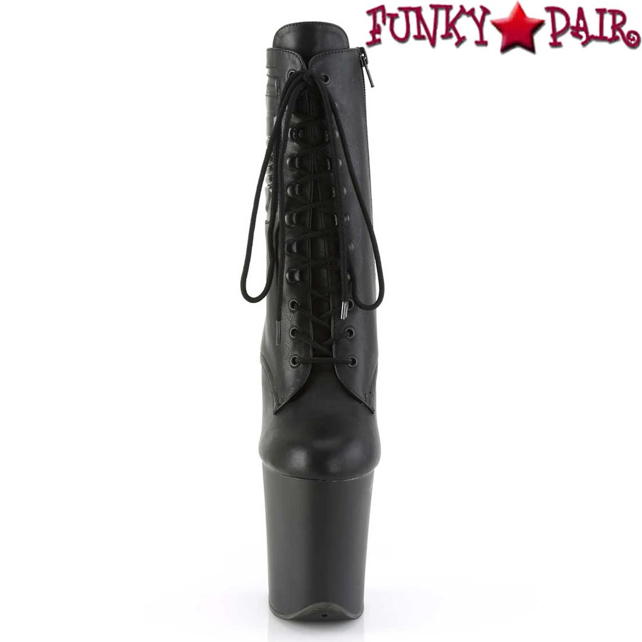 Pleaser FLAMINGO-1020PK Approximately 8″ (200mm) Heel, 4″ (100mm) Platform Lace-Up Front Ankle Boot with Outside Zippered Pocket, Inside Zip Closure