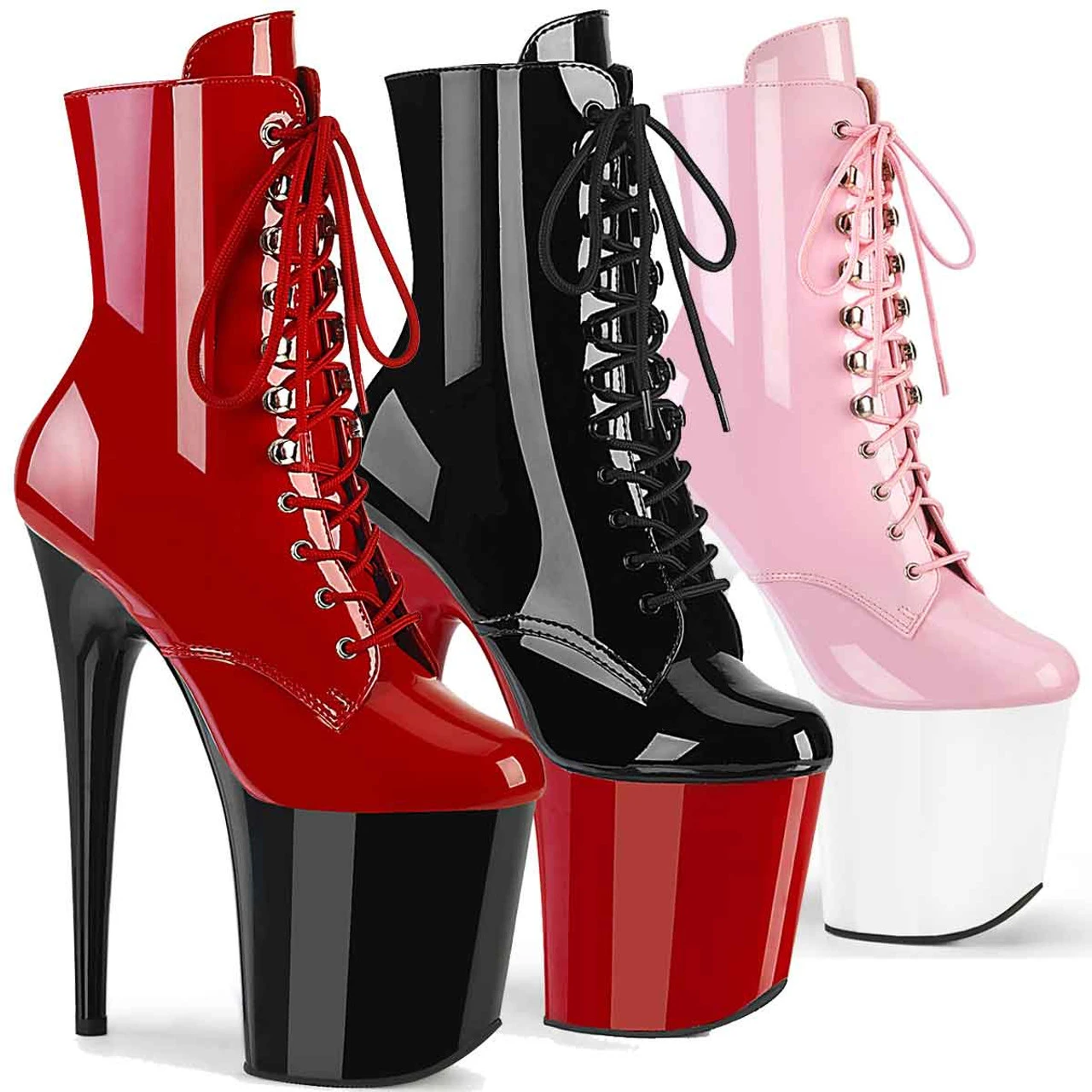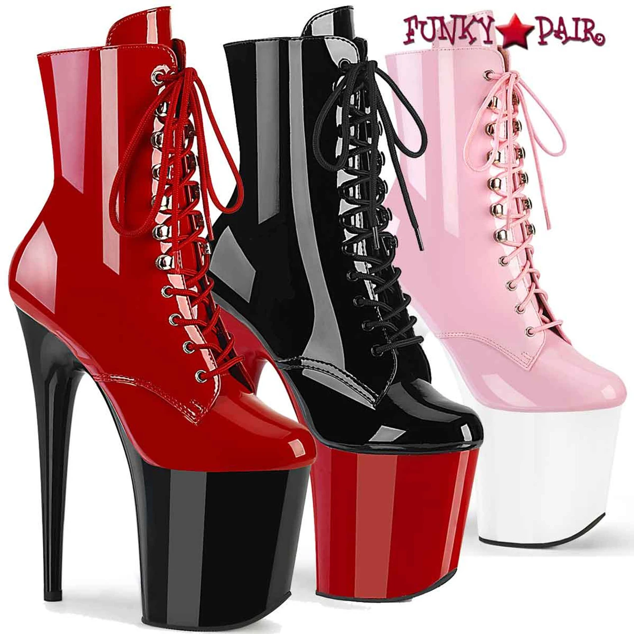 Pleaser Flamingo-1020 Approximately 8 Inch (20.25cm) Heel, 4 Inch (10.25cm) Platform Lace-Up Front Two Tone Ankle Boots, Inside Zip Closure