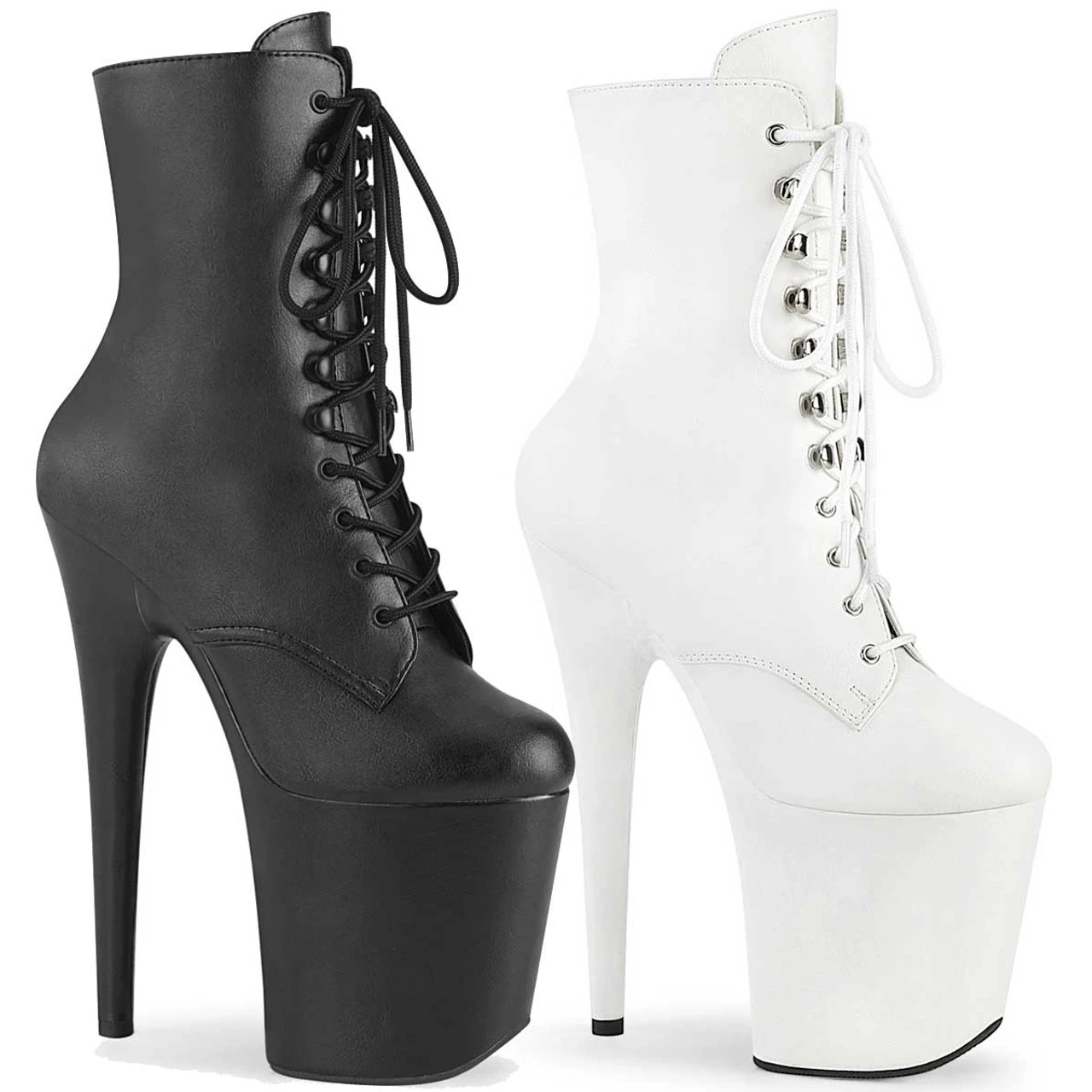 8″ (200mm) Heel, 4″ (100mm) Platform Lace-Up Front Ankle Boot Featuring Fully Wrapped Platform Bottom, Inside Zip Closure