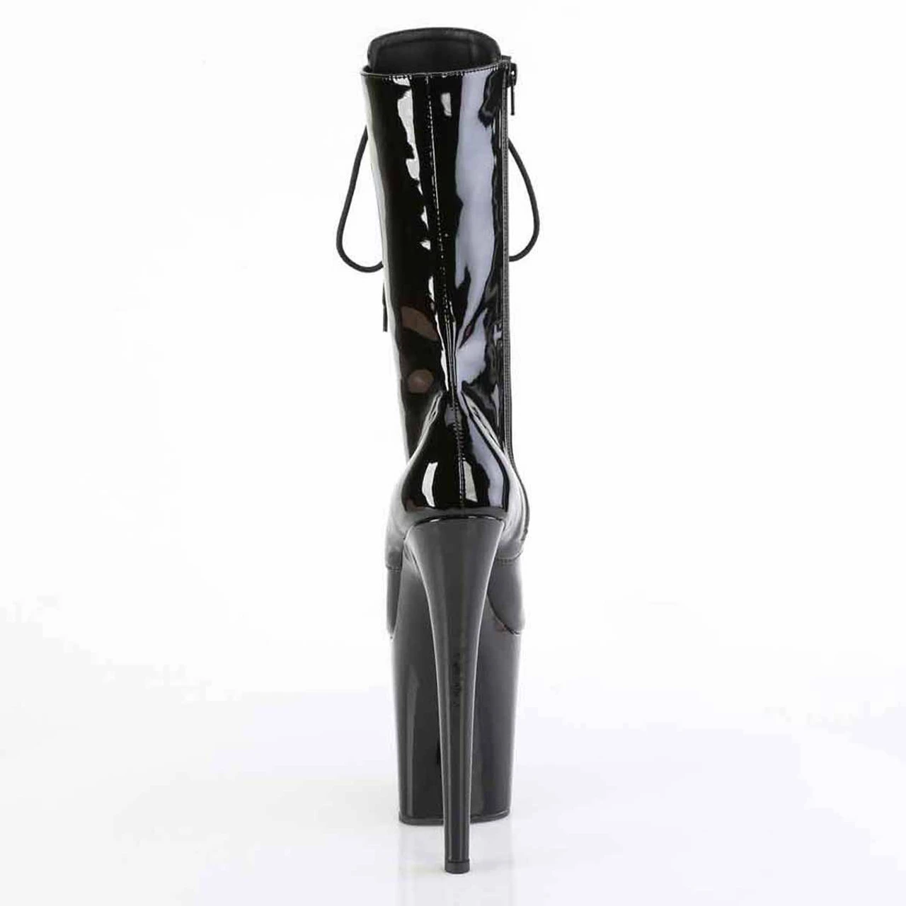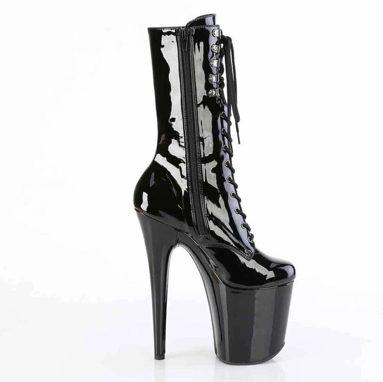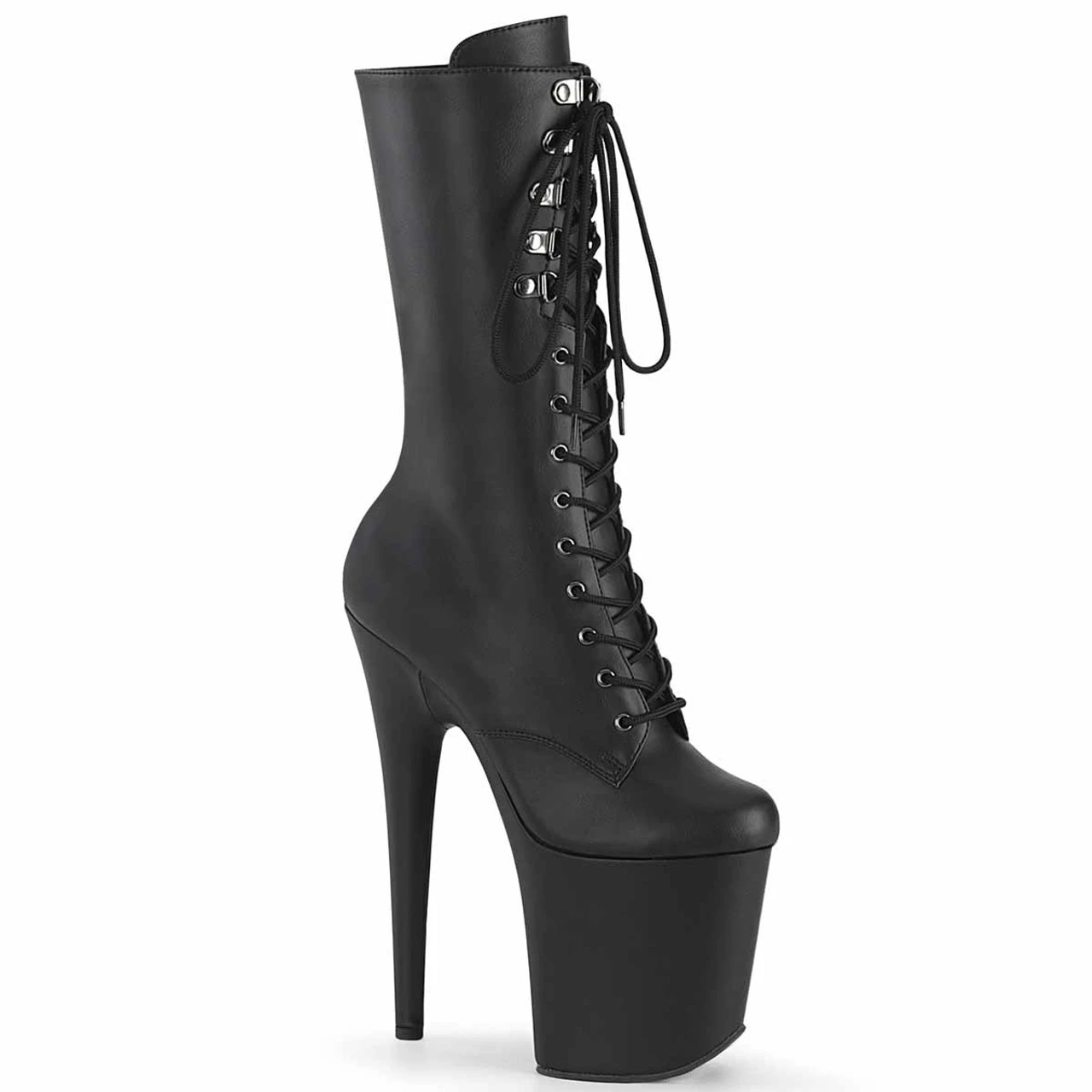 8″ (200mm) Heel, 4″ (100mm) Platform Lace-Up Front Mid Calf Boot, Inner Side Zip Closure