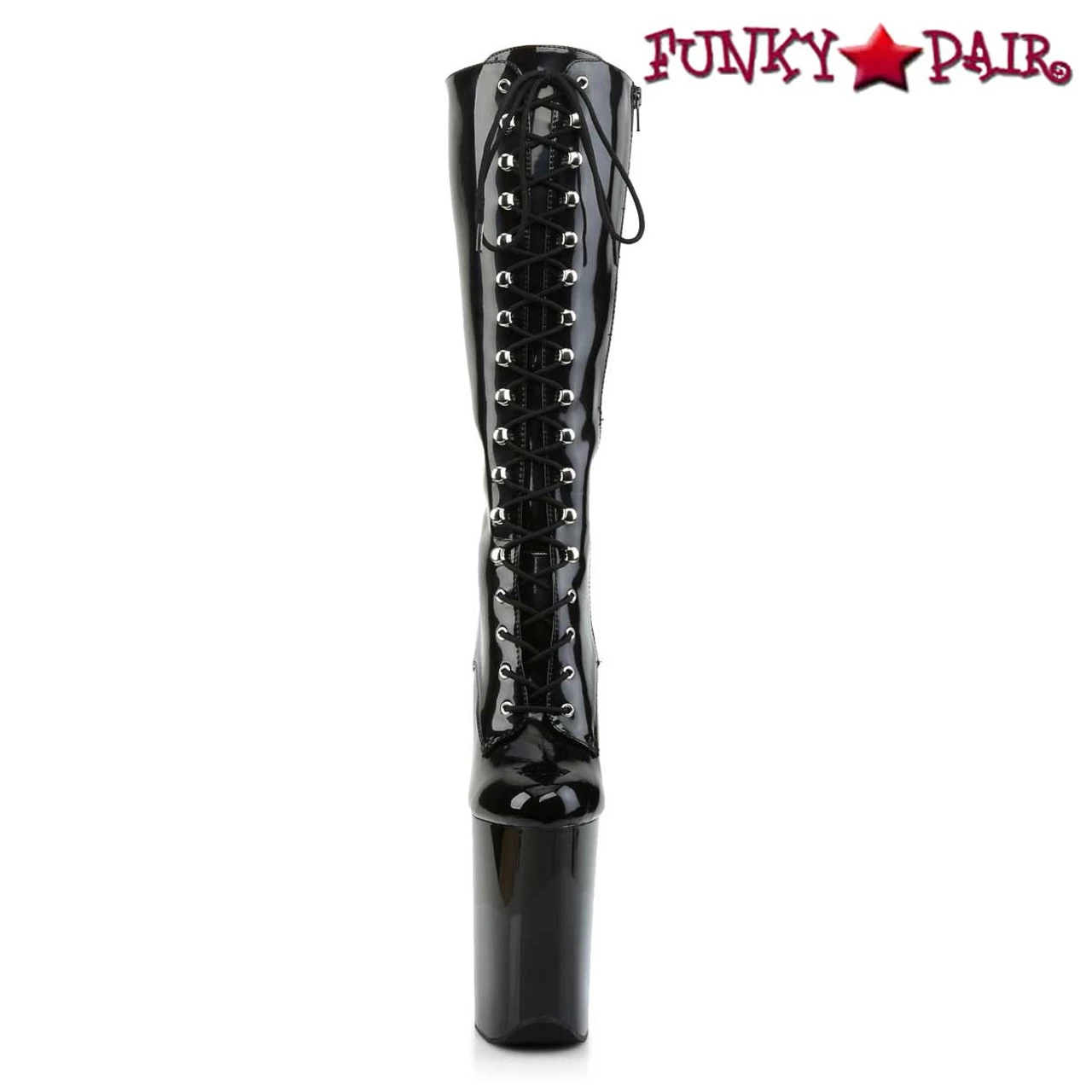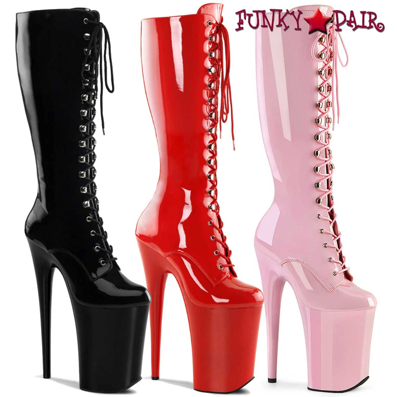 Pleaser Infinity-2020 Approximately 9″ (22.9cm) Heel, 5 1/4″ (13.3cm) Platform Front Lace-Up Ankle Boots Full Inner Side Zipper Warning: Extreme High Heels. Not Recommended for Walking or Dancing.