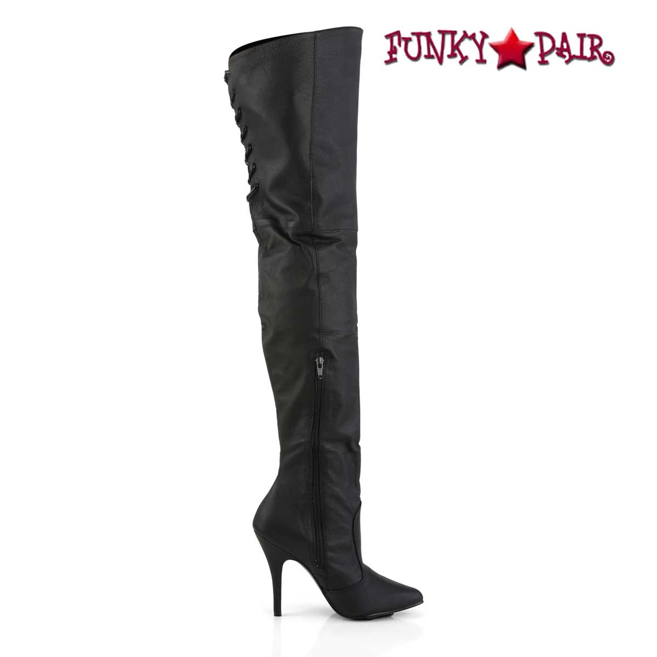 Pleaser LEGEND-8899 Approximately 5 Inch (12.7 cm) Heel, Thigh High Boots Featuring Rear Lacing Detail 1/3 Inner Side Zipper