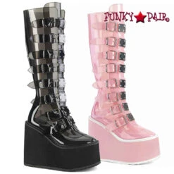 SWING-815C, Clear Platorm Boots With Metal Plates By Demonia