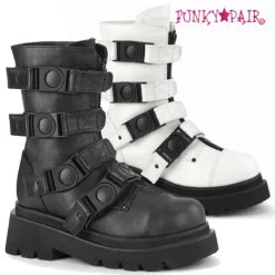 Demonia | Slacker-160, Mid-Calf Boots With Metal Buckles Straps