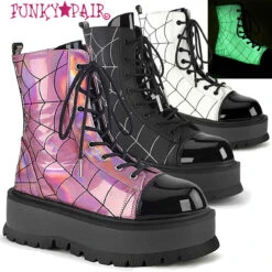 Demonia | Slacker-220 Women’s Gothic Platform Lace-up With Mid-Calf Boots