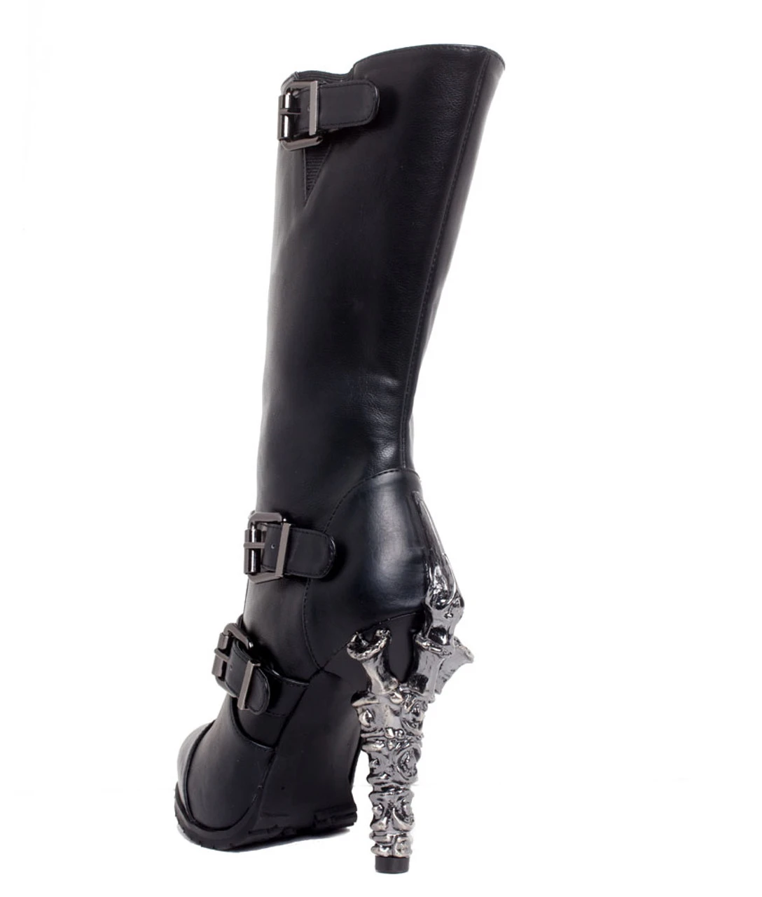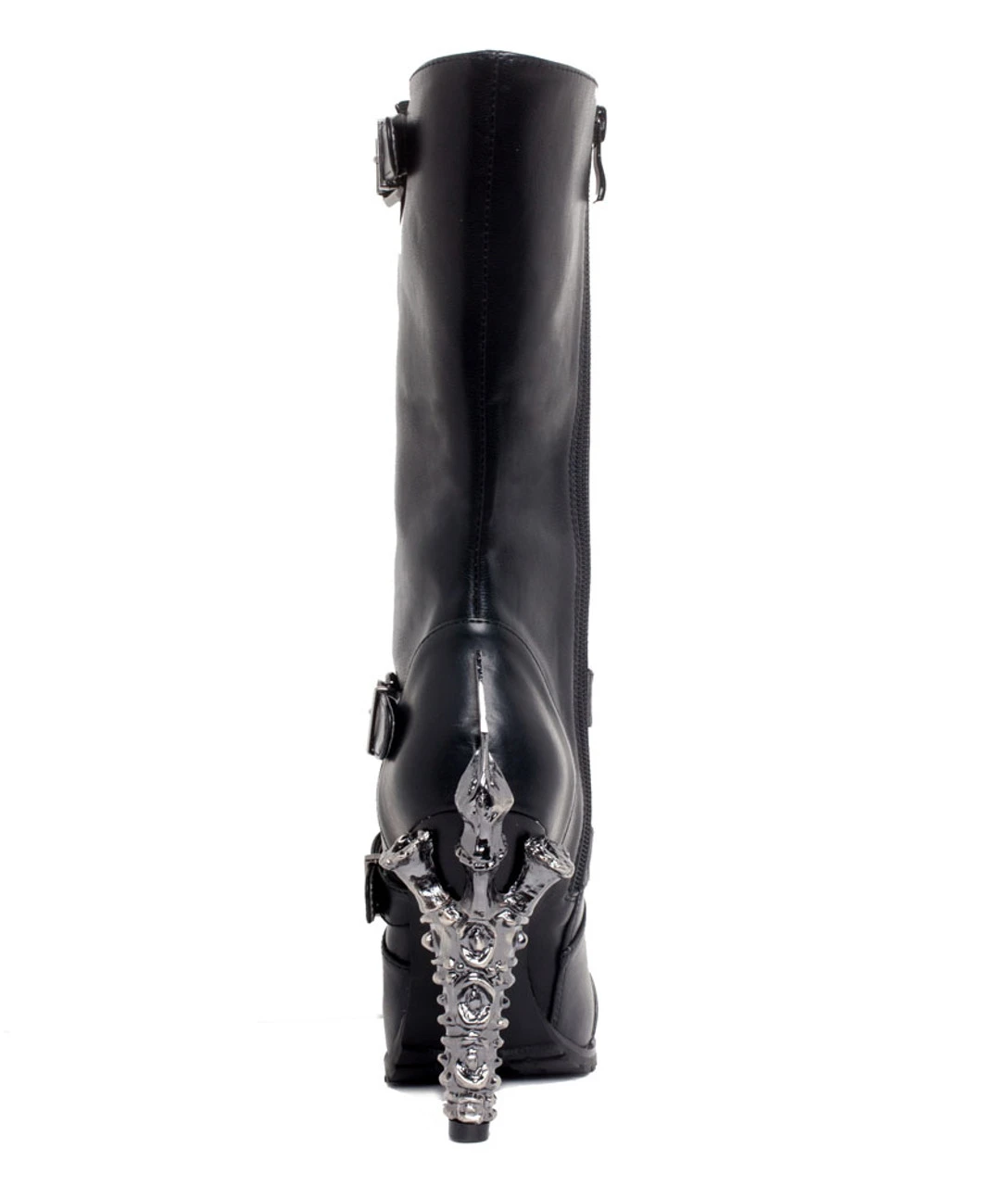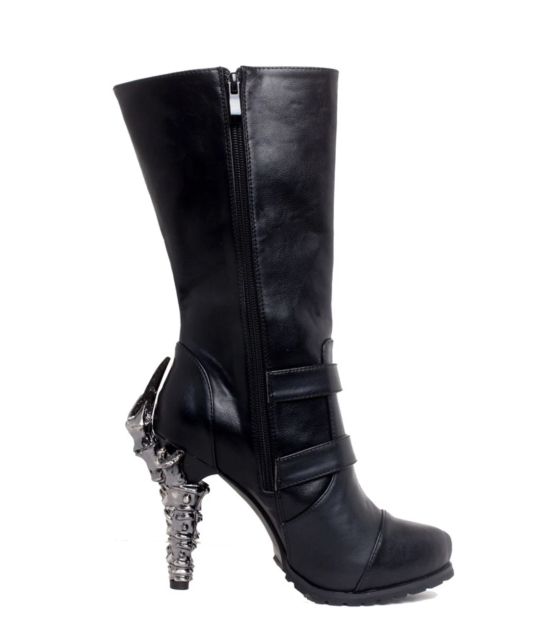 Hades Footwear | ARMA Heavy metal biker inspired Boots with 5″ Claw heel, adjustable ankle and top straps with inner zipper, animal friendly synthetic leather with double insole padding and thick outsole.